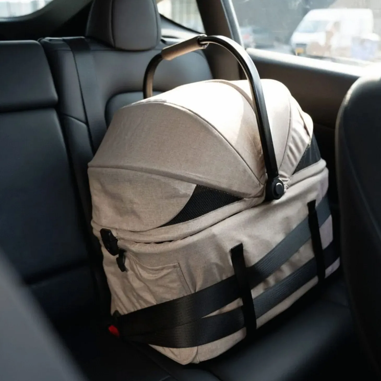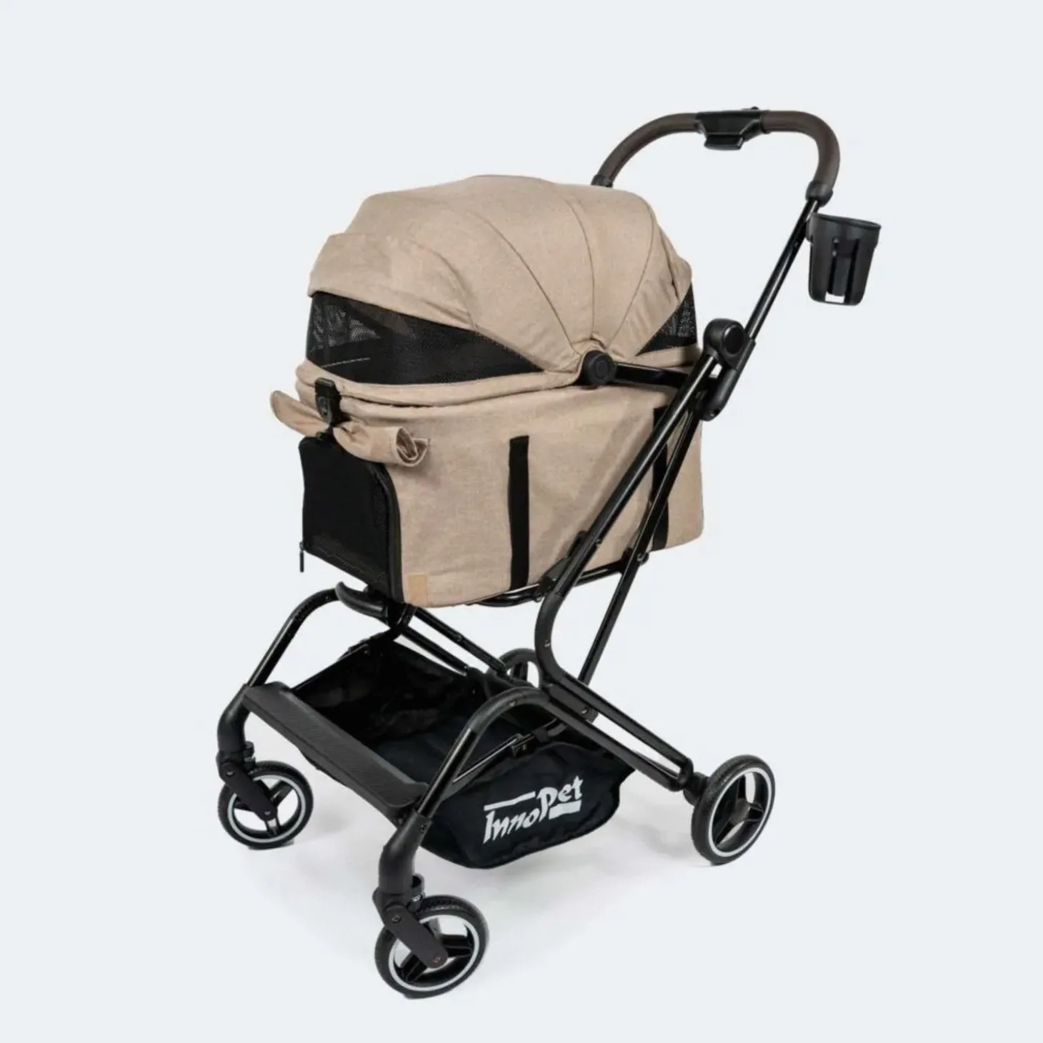 - De cabine kan van het frame afgehaald worden waardoor je jouw huisdier echt overal mee naartoe kan nemen