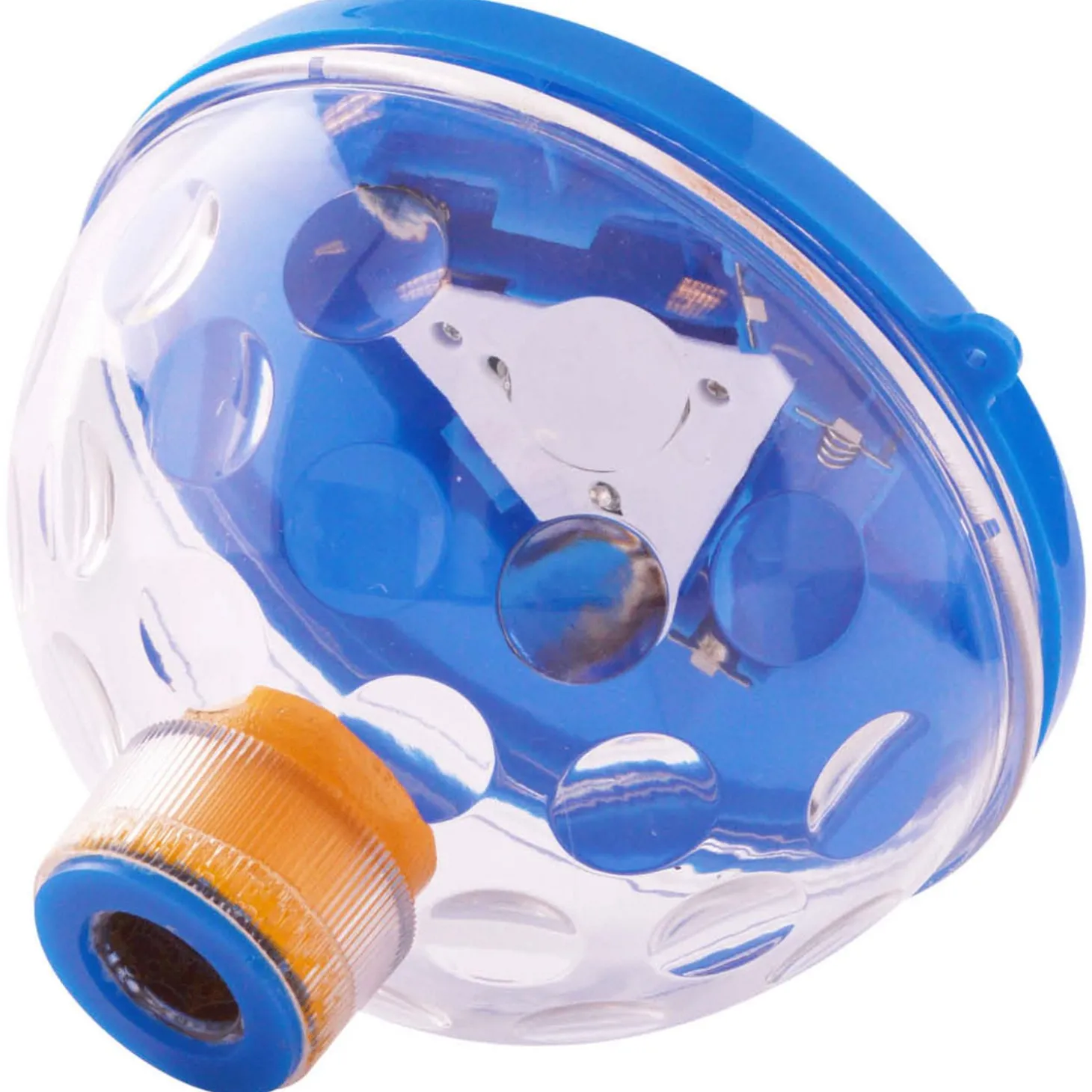 De lamp blijft drijven en door de facetten op de bol verspreidt de lamp een gezellige lichtshow. De verschillende programma’s zorgen voor een echte discosfeer.