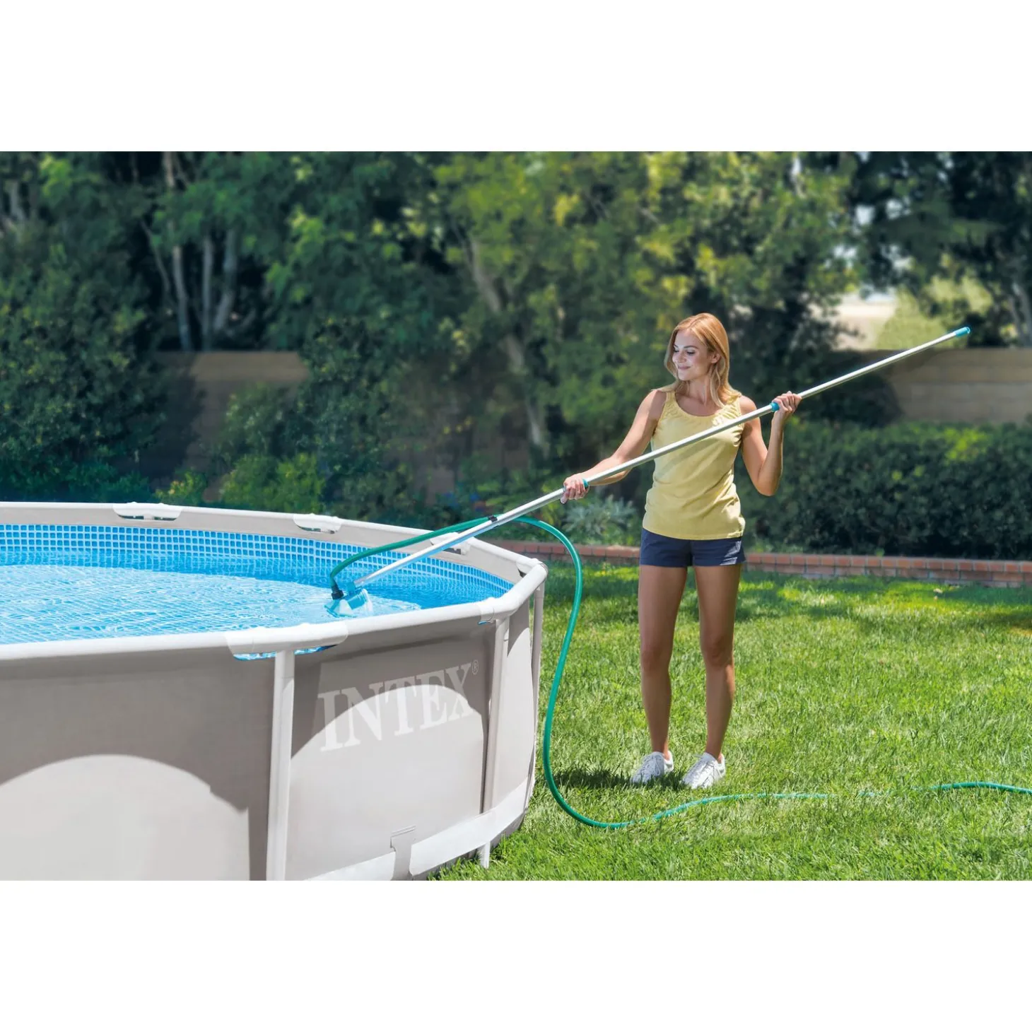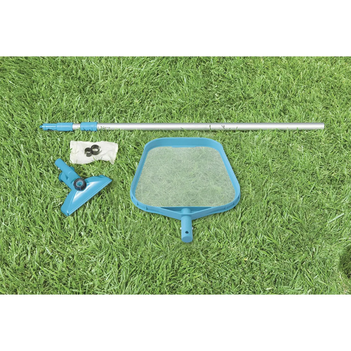 Met het Intex Zwembad Onderhoudspakket heb je alles in huis om je zwembad schoon te houden. De set bestaat uit een bodemzuiger, een schepnet en een telescopische steel. De set is ideaal voor zwembaden met een diameter van 488 cm of kleiner.Zorg dat de bodem van je Intex zwembad vrij is van bladeren en zand met de handige bodemzuiger. Je sluit de tuinslang aan op de bodemzuiger, waardoor er voldoende zuigkracht ontstaat om vuil van de bodem op te zuigen. Zo heb je geen last meer van zand, gras, insecten en bladeren op de bodem. Het vuil wordt opgevangen in het bijgeleverde zakje.