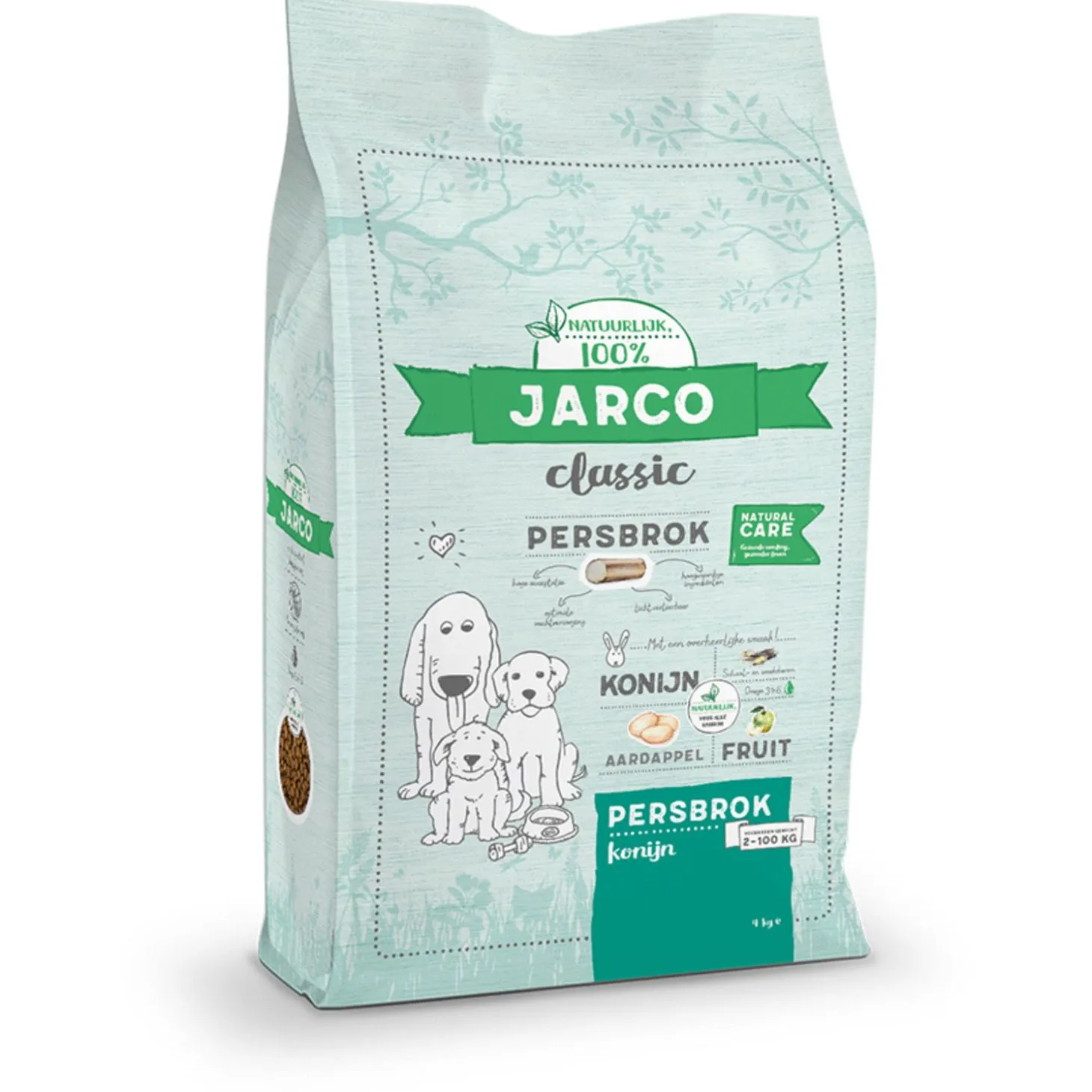 Een gezonde hond begint bij een gezonde brok. Natural Classic Persbrok Adult Konijn van Jarco is een hoogwaardige natuurlijke en gezonde premium voeding zonder chemische antioxidanten of geur, -kleur, -en smaakstoffen. Deze voeding is door de perfecte energie- en voedingsbehoefte geschikt voor alle hondenrassen en kan goed worden gecombineerd met Jarco Vleesvoeding. Het betreft hier een persbrok.