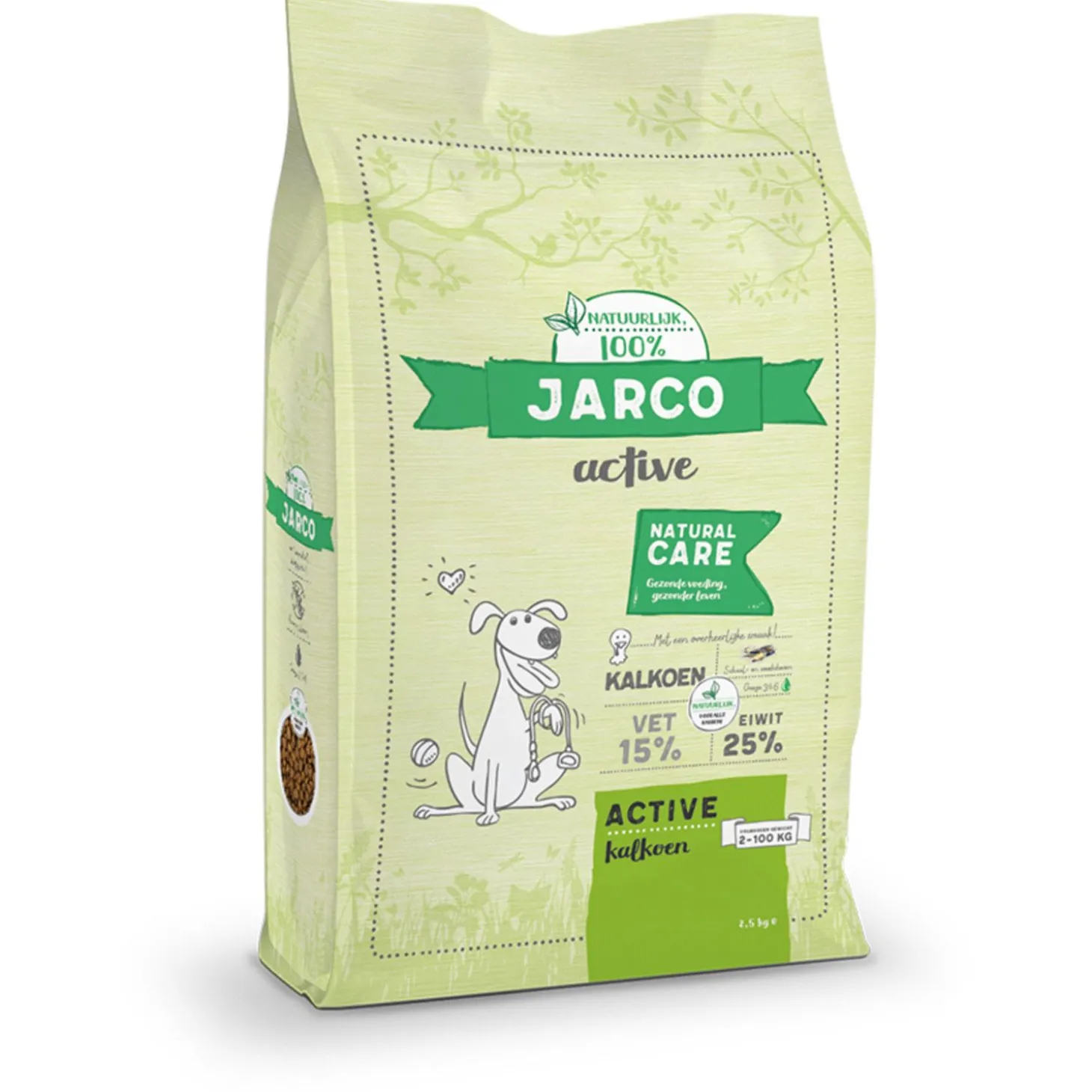 Natural Active Kalkoen is verkrijgbaar in 2,5 kg en 12,5 kg.