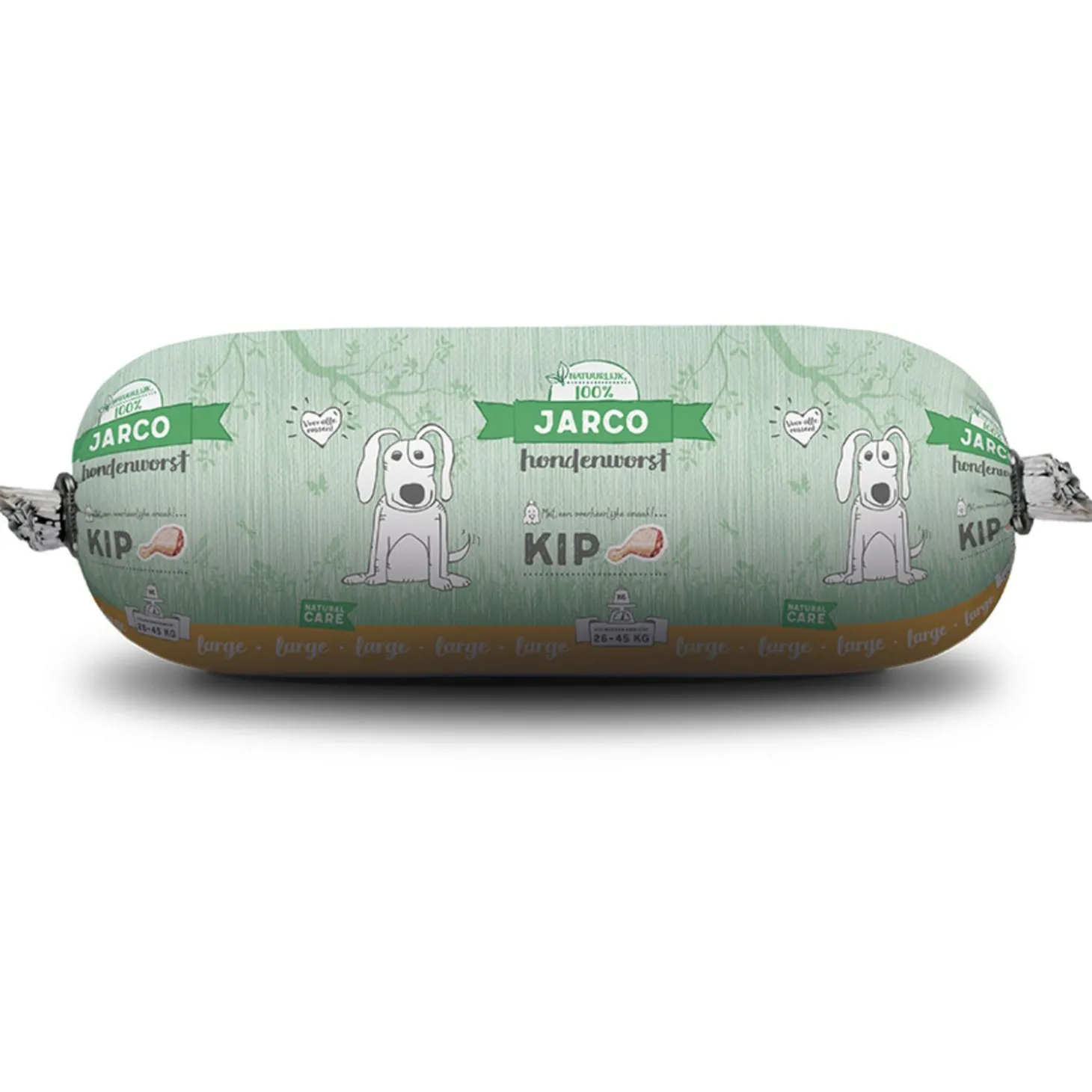 Neem jij je hond gezellig mee op vakantie? Of gaan jullie gewoon een dagje de deur uit? Dat is geen probleem met deze handige100% compleet uitgebalanceerde houdbare worst. Je kan het voeren als complete dagvoeding, als aanvulling naast de brokken, maar ook natuurlijk als toetje! De worsten zijn buiten de diepvries houdbaar en zijn dus hét perfecte alternatief voor diepvriesvoeding. De worsten hebben een hoge verteerbaarheid, dat betekent dat je minder poepzakjes hoeft te gebruiken! Een kieskeurige hond? Niet getreurd… Ook de kieskeurige honden zullen ervan smullen.Heb jij een lieve pup in huis? Dat is natuurlijk hartstikke leuk, maar pups hebben een andere voedingsbehoefte dan volwassen honden.Voor de pups van large én giant rassen adviseren wij Jarco hondenworst Giant kip/kalkoen.