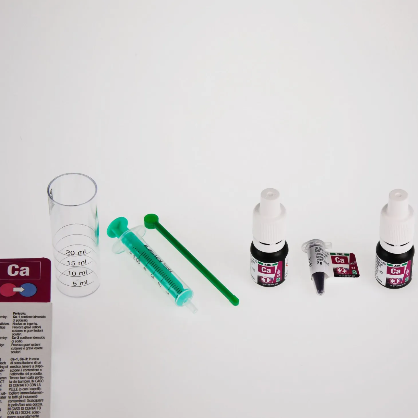 - Incl. 3 reagentia, kunststof cuvet, spuit en doseerlepel