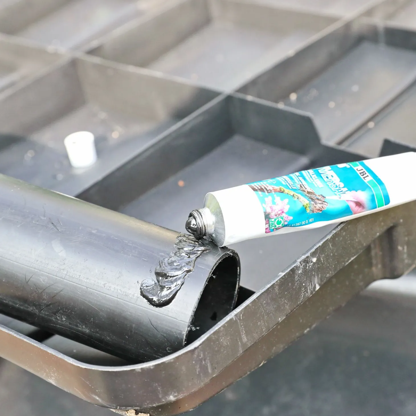 - Voor het bevestigen van decoraties, aquariumglas en technische apparatuur, het repareren van lekken en nog veel meer