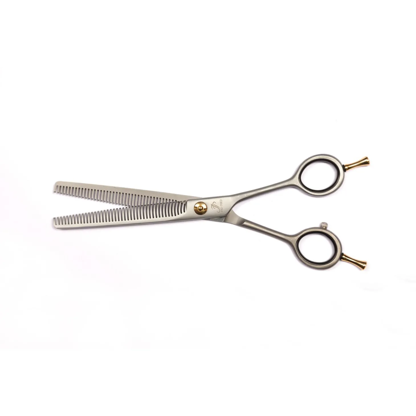 De Effileerschaar Dubbel heeft op beiden bladen tandjes zitten. Deze tandjes zorgen ervoor dat je de vacht van je hond kan uitdunnen. Hierdoor wordt de vacht van je hond dunner, soepeler en minder stug. Voor een natuurlijker effect, zonder happen in de vacht.
