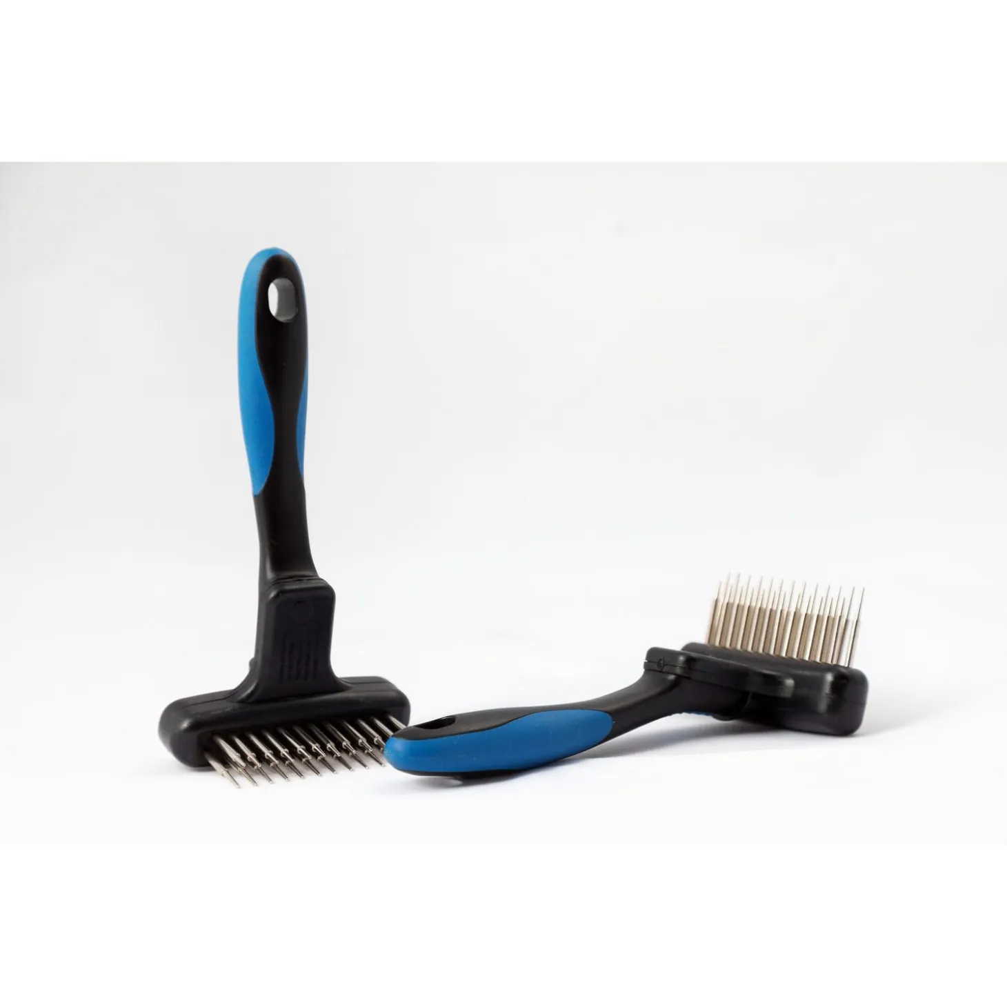 Deze hark is voorzien van een dubbele rij lange en korte verende en roterende tanden. wat het ontklitten een stuk makkelijker maakt. 9 cm met een rij van 2,2 cm en een rij van 2,7 cm tanden.