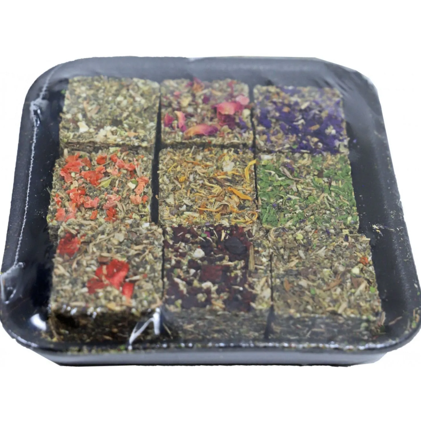 De verpakking bevat 9 bonbons die zijn verrijkt met goudsbloem, roos, stokroos, aardbei, wortel, rode biet, pastinaak, spinazie of paardenbloem. De tussendoortjes zijn een aanvullend voeder, leg deze in de kooi van je dier of in een ren voor extra verrijking. De snack is geschikt voor knaagdieren en dwergkonijnen.