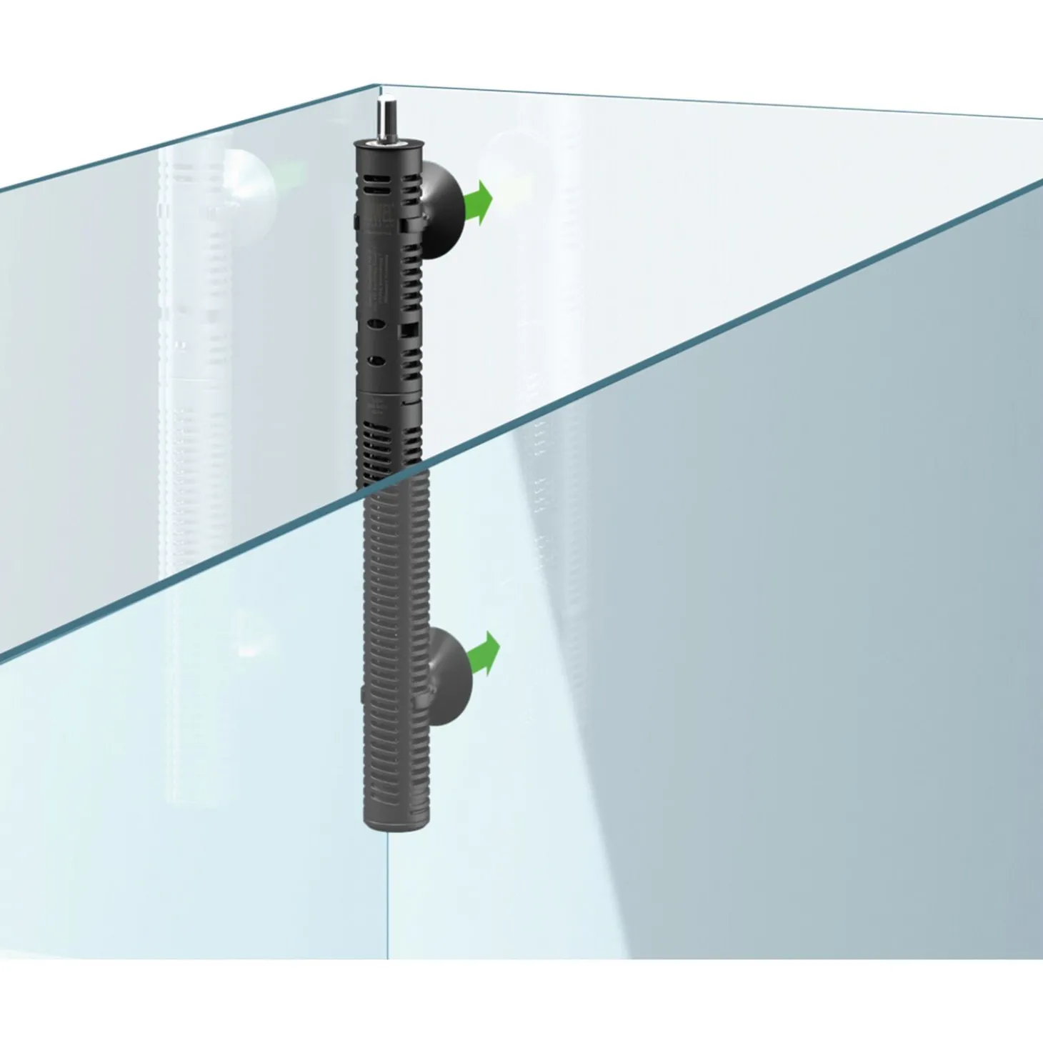 Afhankelijk van de aquariumgrootte en de omgevingstemperatuur, kan je het water tot ongeveer 28°C verwarmen. Je installeert de AquaHeat Pro in de waterdoorstroming van het filter. Zo zit deze niet in het zicht, maar zorgt hij toch voor een gelijkmatige en efficiënte warmteverdeling van het water. De thermostaat is verder voorzien van hoogwaardige zilvercontacten en slagvast Borosilicaatglas. De AquaHeat Pro is verkrijgbaar in 3 varianten: