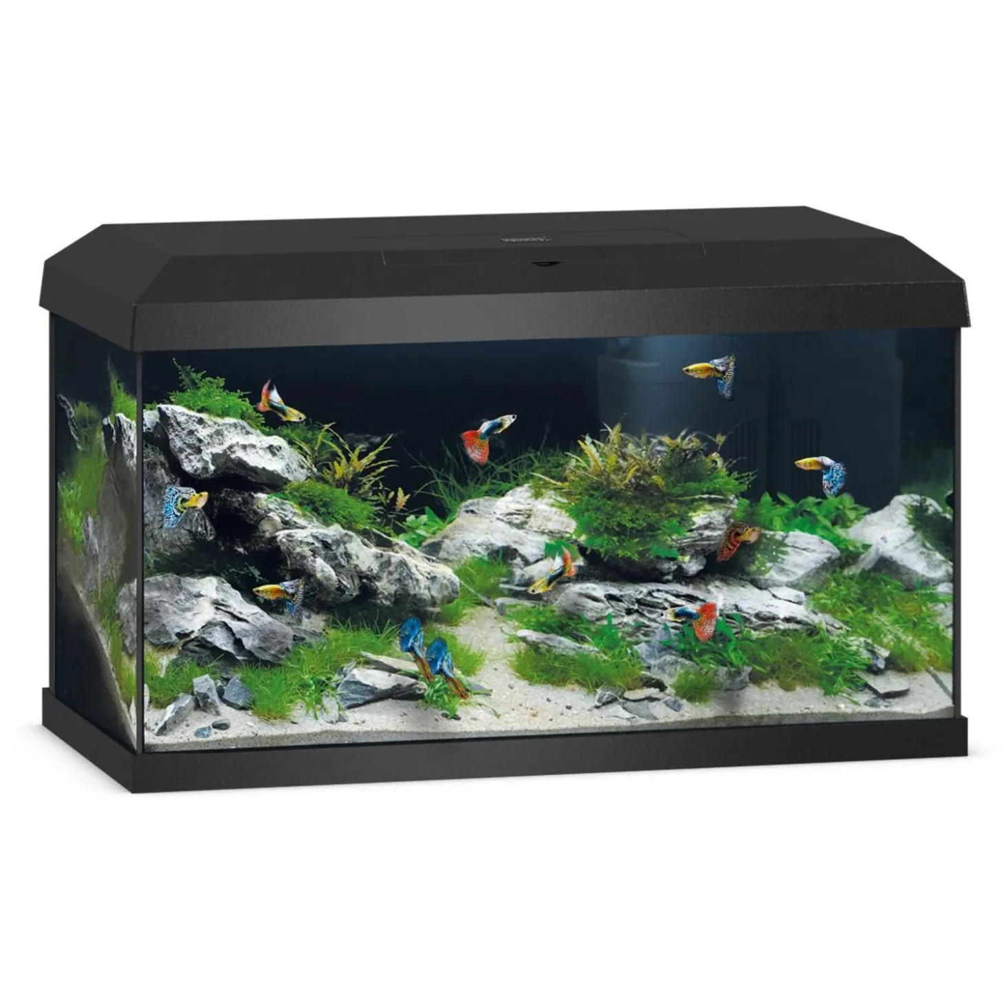Het aquarium is makkelijk toegankelijk doordat de lichtkap opengeklapt kan worden. Door een geintegreerde klep kun je de vissen makkelijk voeren of een voederautomaat plaatsen.