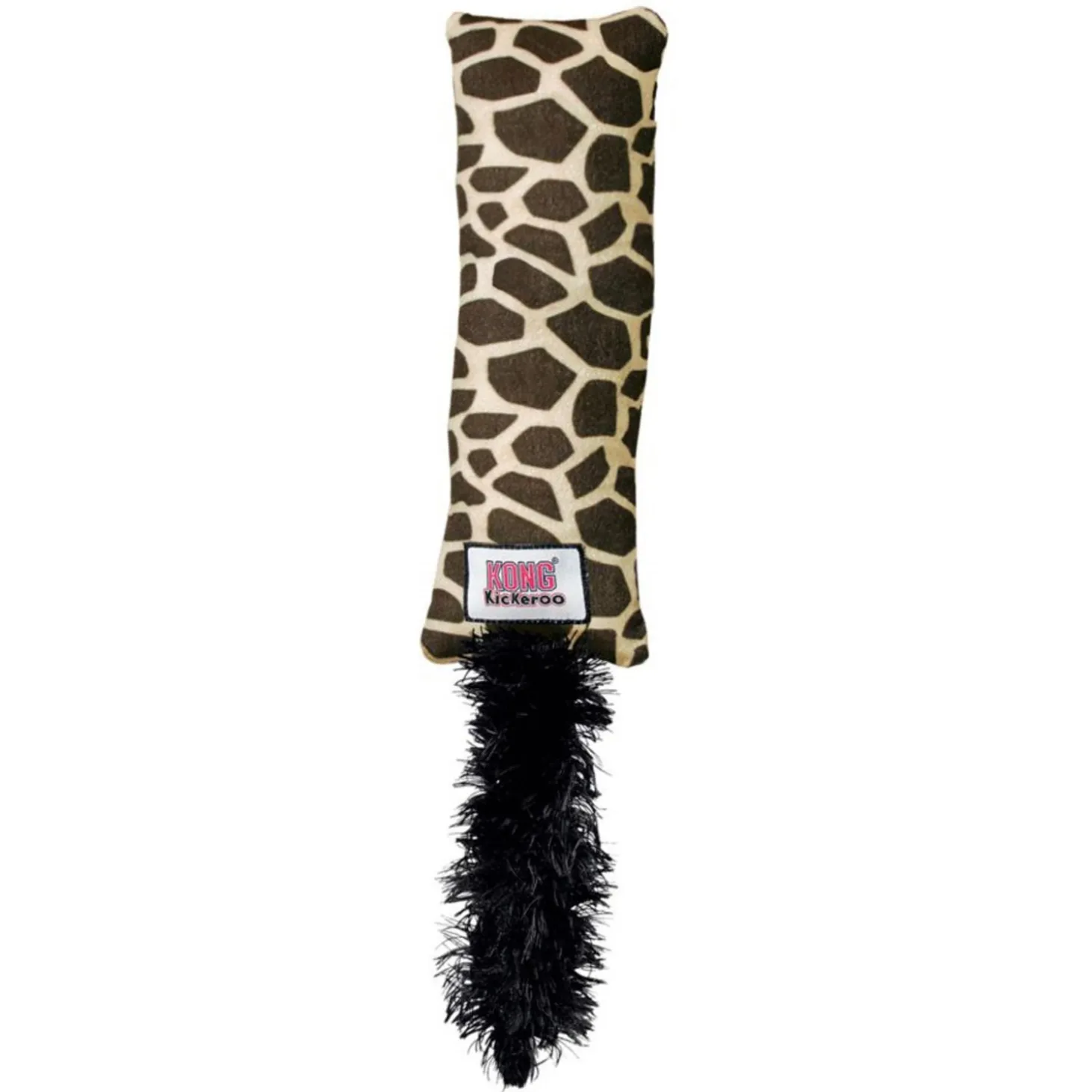 De Kickeroo Pattern van KONG heeft een speciaal ontworpen lengte die geschikt is voor katten zodat ze gemakkelijk met hun achterpoten tegen het speeltje aan kunnen trappen. Dit bevordert de gezonde lichaamsbeweging voor iedere kat. De pluizige staart van de Kickeroo wakkert het jachtinstinct van je kitten aan. Het kreukelgeluid in het kussentje in combinatie met het onweerstaanbare premium Noord-Amerikaanse kattenkruid maken het speelplezier af. De Kickeroo Pattern heeft een giraf printje.