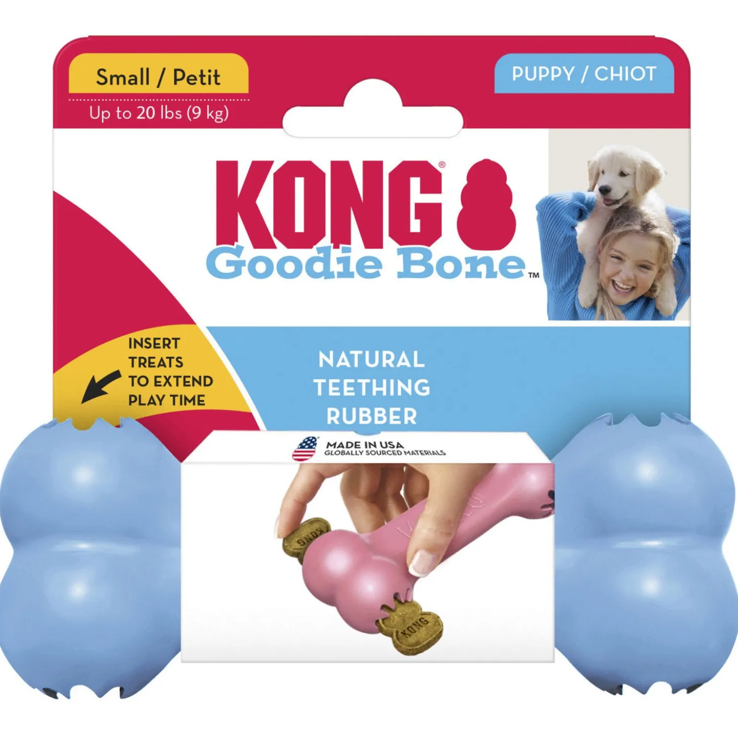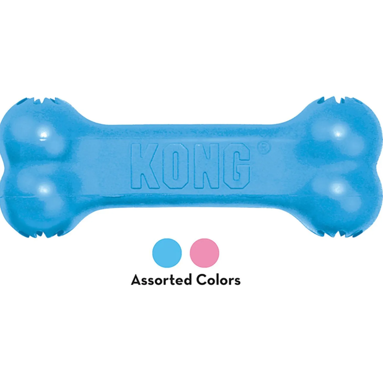 - Bone made of soft KONG puppy rubber designated to soothe sore teeth and gums