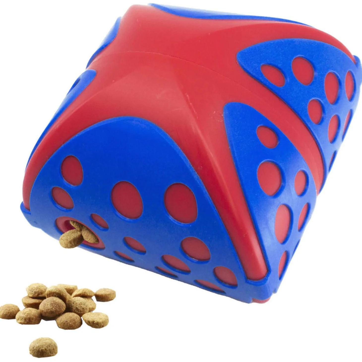 De Kong Rewards Wally maakt een langzame rolbeweging wanneer hij zachtjes aangestoten wordt en laat gaandeweg brokken of traktaties vallen. De unieke buitenkant creëert een onvoorspelbare beweging die natuurlijke jachtinstincten beloont. Het gripvolle materiaal aan de buitenkant dempt geluid voor stiller speelplezier. Gebruik deze slowfeeder als een voerbak om te helpen het gewicht van je hond te reguleren door de duur van de maaltijd te verlengen. Eenvoudig los te schroeven om te vullen of met de hand te wassen.