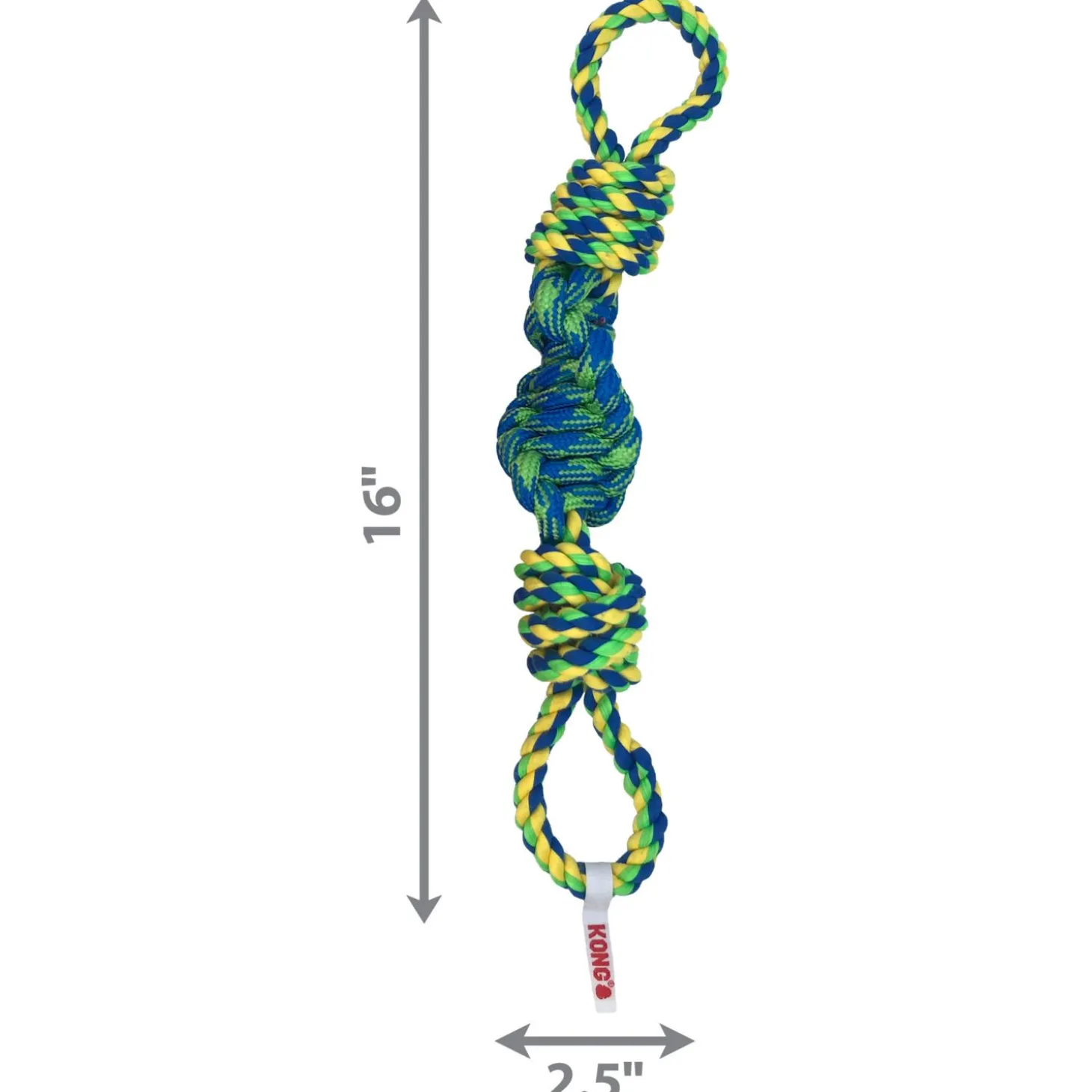 - Springy internal bungee enhances tug-and-toss fun