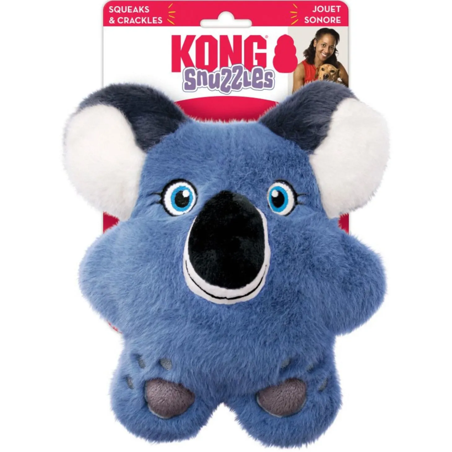 Kong Snuzzles Koala zit vol met plezier en zijn hele lijf piept met een lange, luide pieptoon. De pluche buitenkant zorgt voor extra genot, terwijl het instinctieve kauwgedrag bevredigd wordt. Het compacte gevoel bij het bijten en de beloning voor het juiste spel zorgt voor extra betrokkenheid. De platte vorm zal verschillende honden van verschillende grootte zeker aanspreken en is ideaal voor plezier binnenshuis.