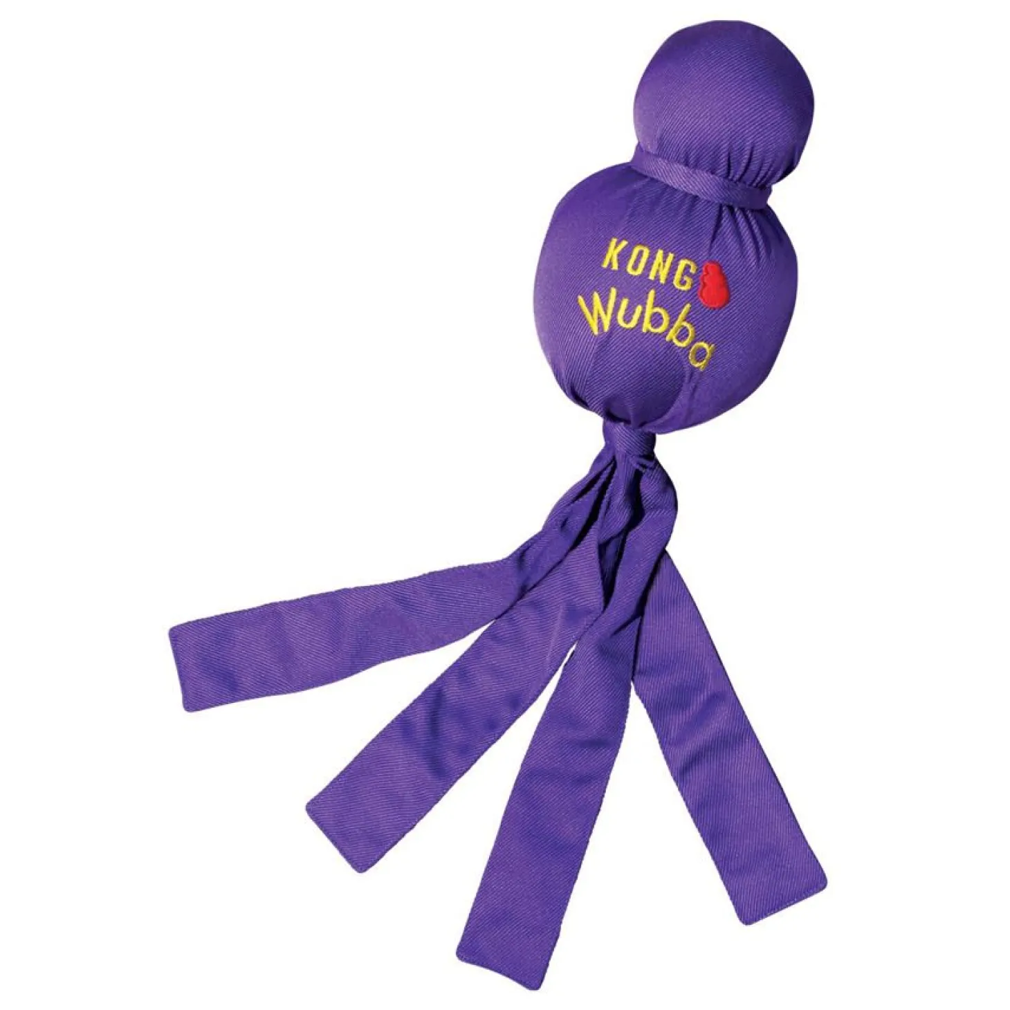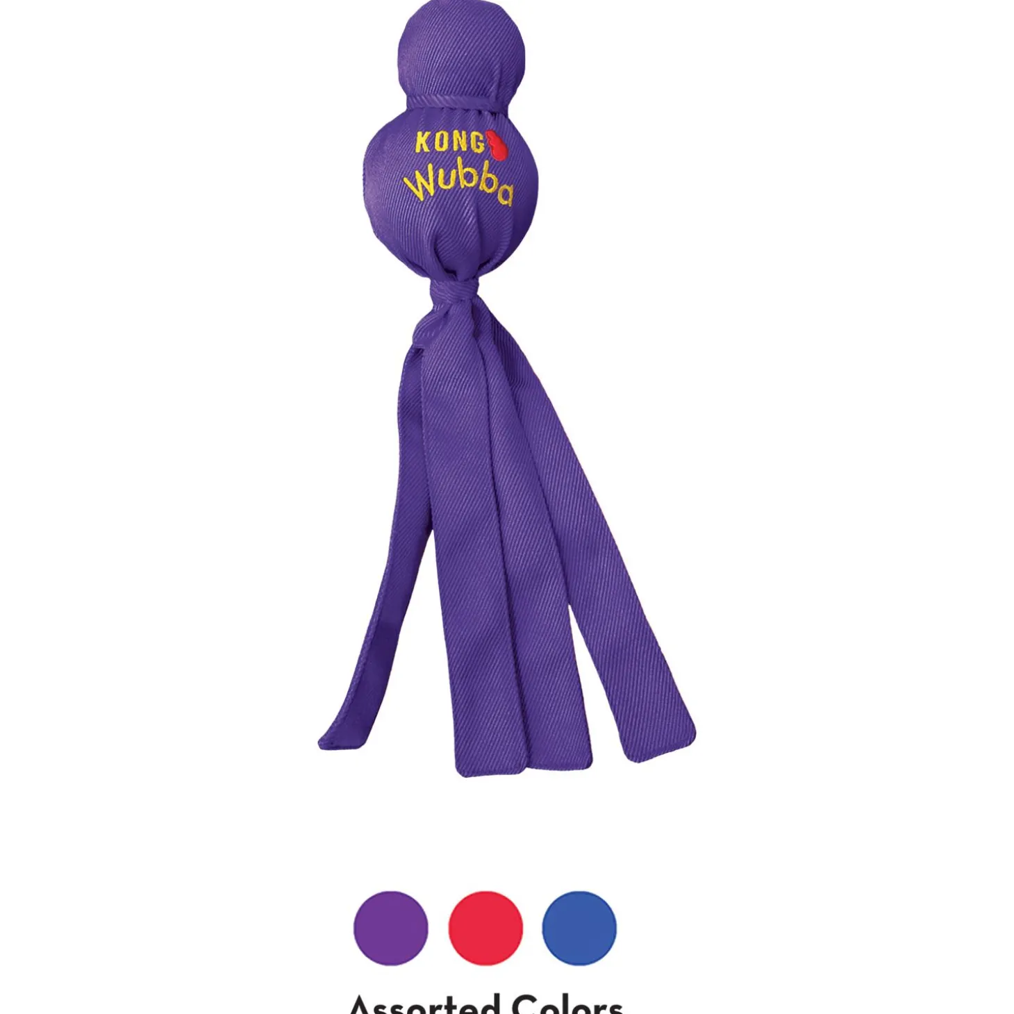 Met de Wubba heb je een zeer veelzijdig speeltje in huis. De Wubba van KONG is een grappig interactief gooi- en trekspeeltje. Ze zijn geschikt om zowel binnenshuis als buitenshuis te gebruiken. De slingerende staarten zorgen ervoor dat je hond het speeltje gemakkelijk oppakt, maar jij kan de Wubba ook gemakkelijk weggooien! Elke Wubba is bedekt met onverslijtbaar, verstevigd nylon voor extra stevigheid. Ze hebben ook ieder een tennisbal bovenop en een piepbal onderop. Belangrijk, de Wubba is niet geschikt tijdens kauwmomenten.