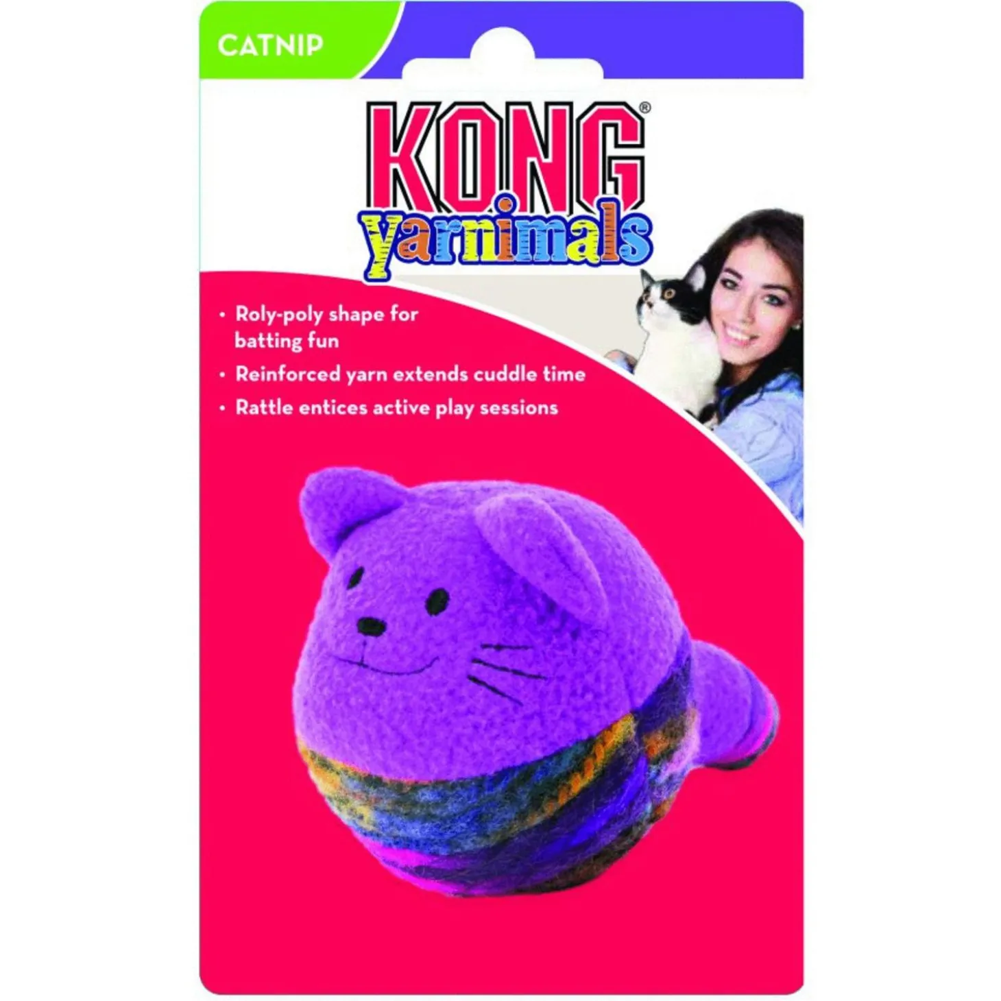 De Yarnimals van KONG zijn vrolijk gekleurde ballen die gemakkelijk rond rollen en veel jachtplezier geven. Het grappige gezichtje op de vrolijke gekleurde balletjes geeft een levendige draai aan een klassiek balletje. De rammelaar aan de binnenzijde van het balletje lokt je kat uit voor veel speelplezier. Het balletje is gemaakt van versterkte garen en kan dus wel tegen een stootje. Een extra dosis premium Noord-Amerikaanse kattenkruid maakt het speelplezier af. De Yarnimals zijn verkrijgbaar in verschillende kleuren.