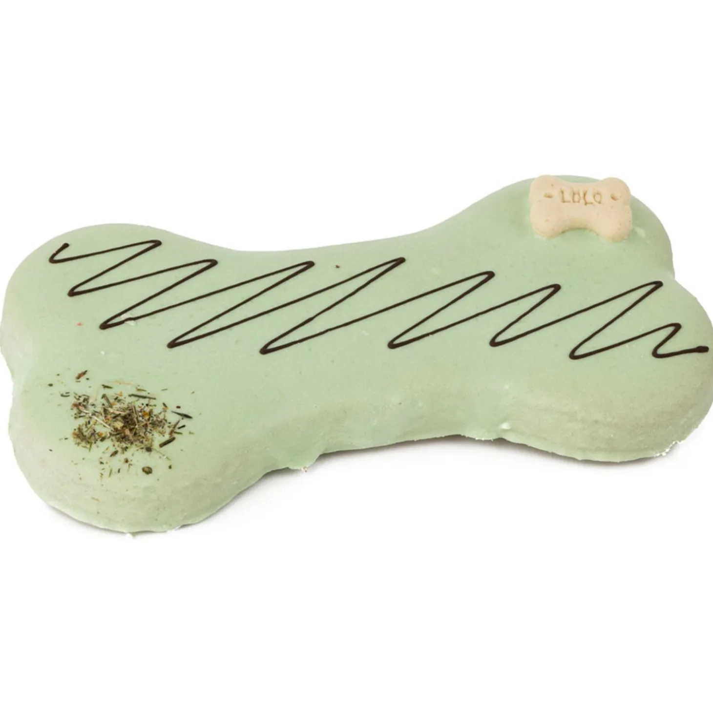 De basis van de taart bestaat uit een licht verteerbare biscuit, samengesteld uit natuurlijke ingrediënten die een waardevolle toevoeging vormen voor het dieet van je hond. Bovendien draagt de stevigheid van de biscuit bij aan de tandgezondheid en het tandvlees van je hond.