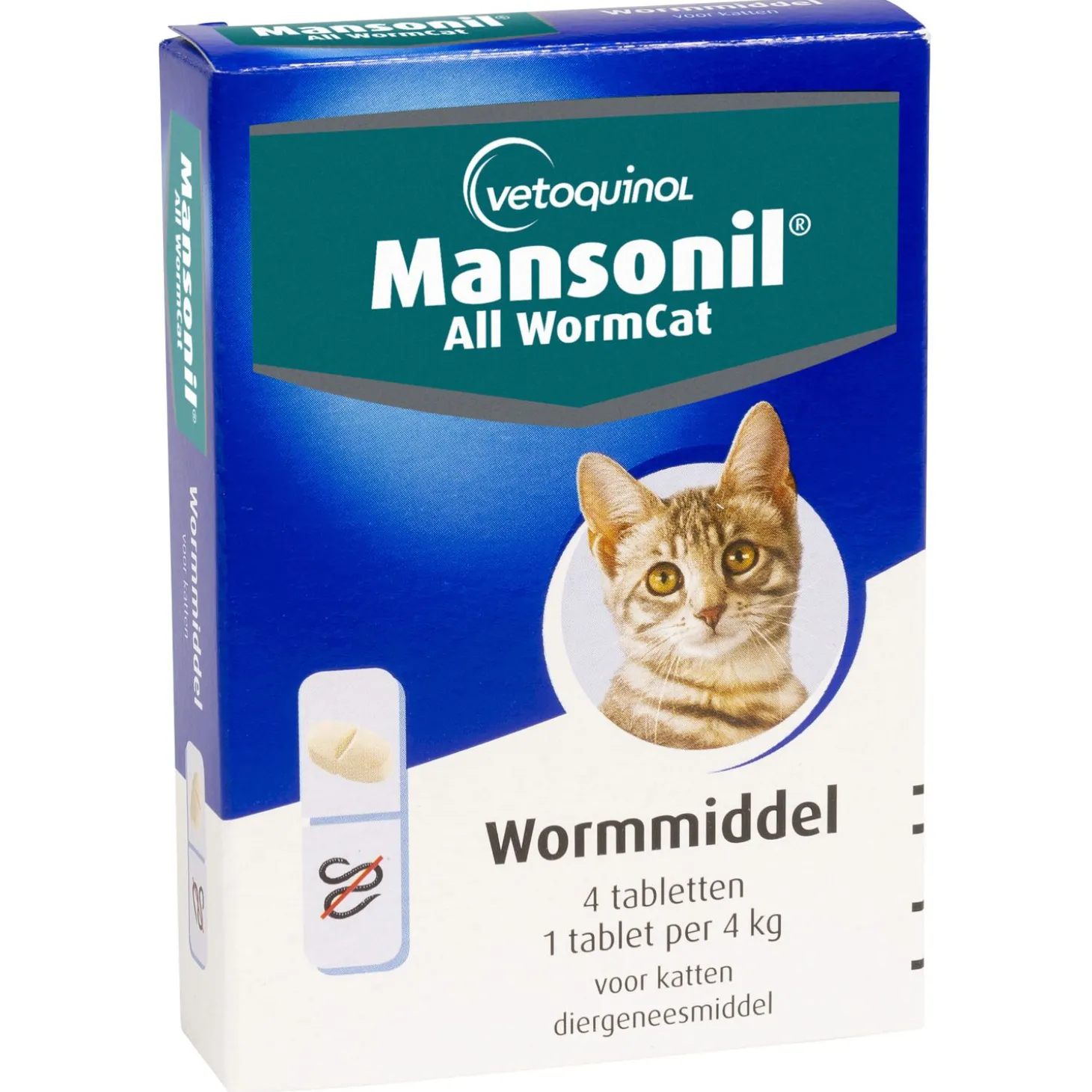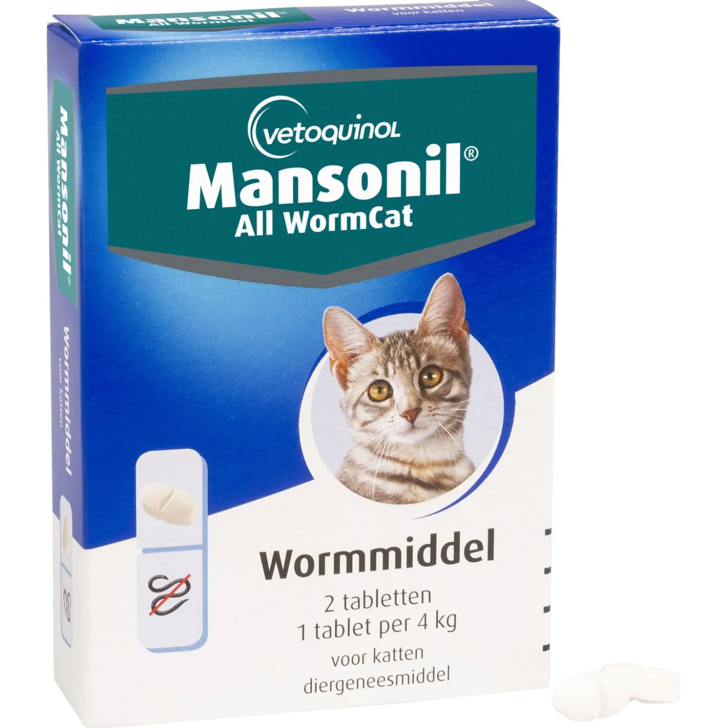 Het is belangrijk voor de gezondheid van je kat om wormen te bestrijden. All worm tablet cat van Mansonil is een middel dat een zeer breed spectrum aan wormen doodt, zowel rondwormen als lintwormen.
