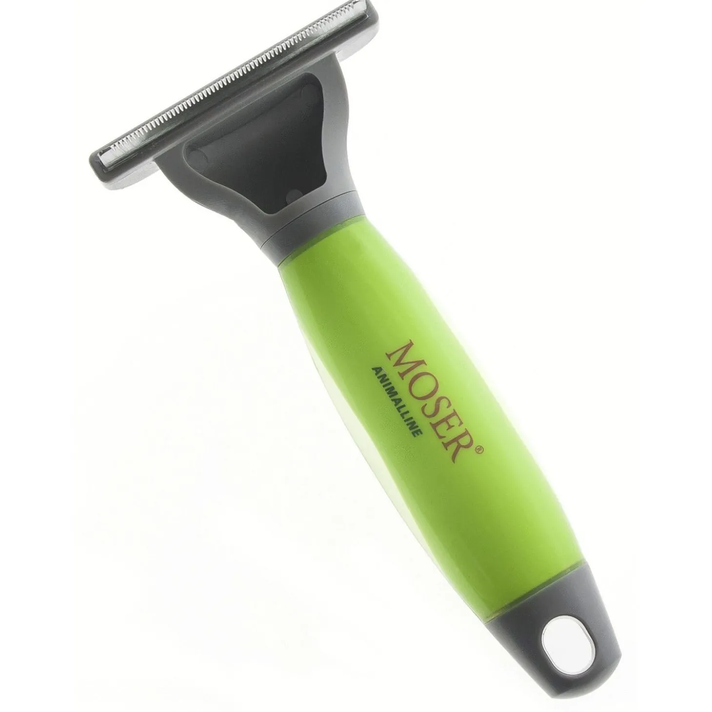 Het verwijderen van de onderwol is een fluitje van een cent met de Trimhark van Moser. De Trimhark moet wel met mate gebruikt worden, overmatig gebruik zorgt voor dof dekhaar. Gebruik de trimhark dus niet dagelijks!
