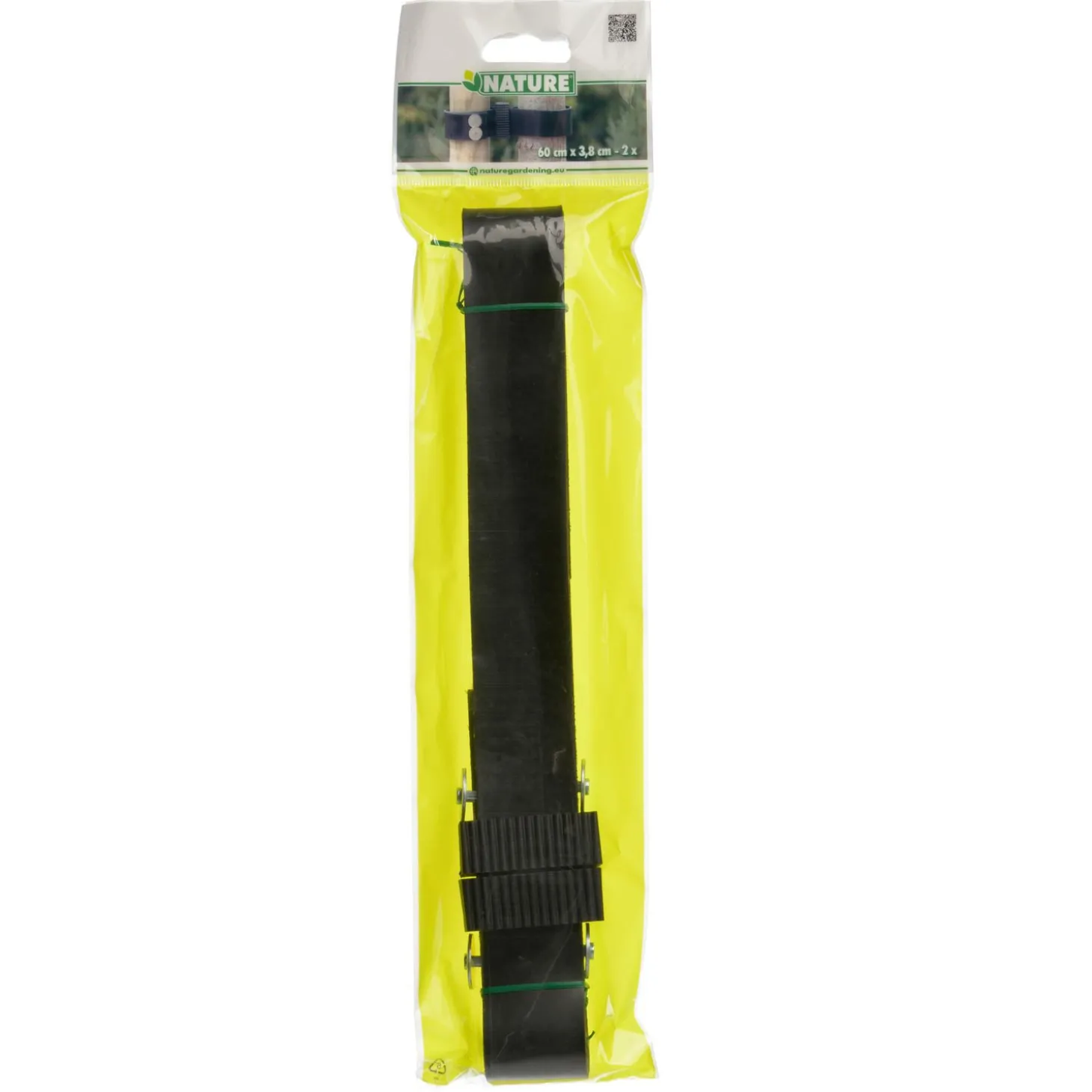 De Boomband is 60 cm lang x 3,8 cm breed en komt per 2 stuks.