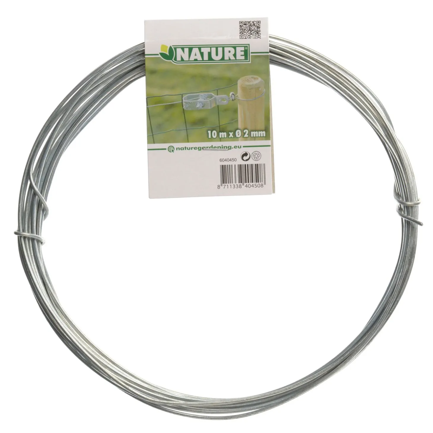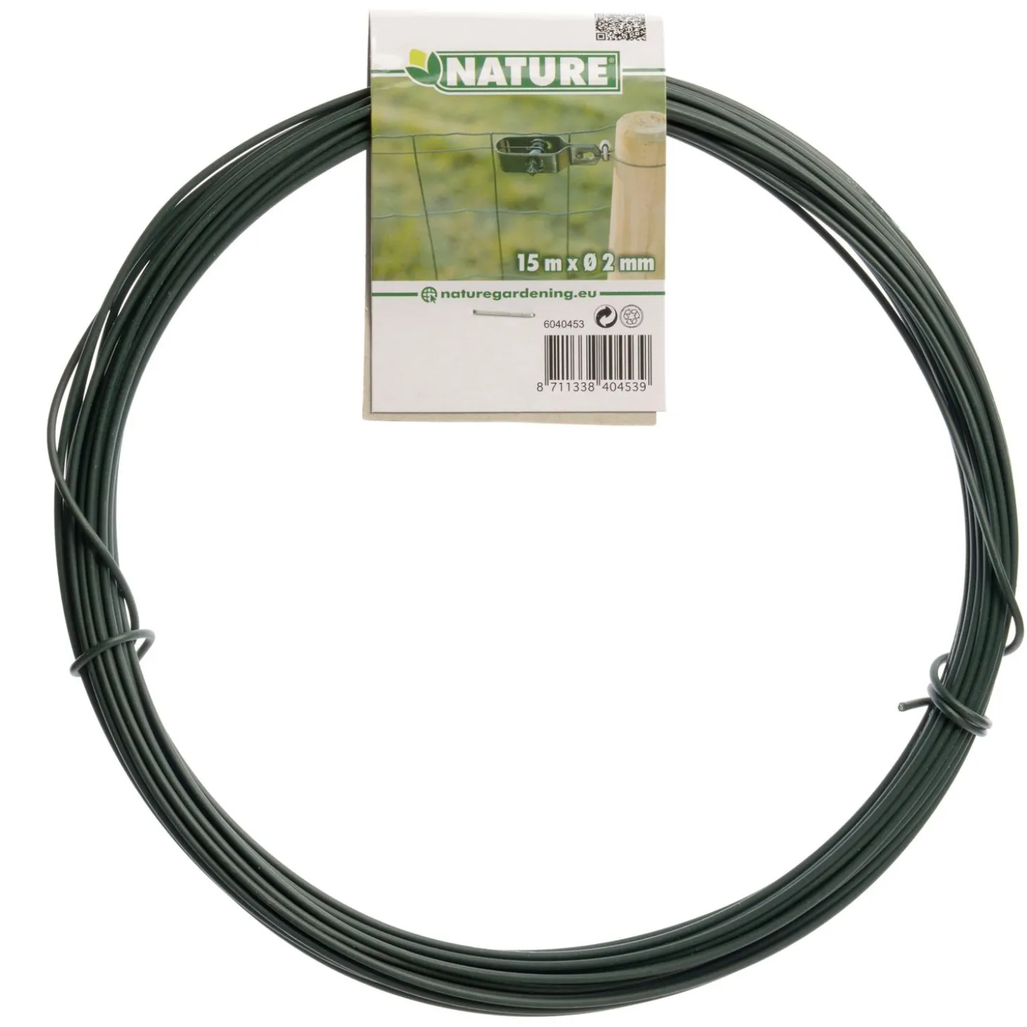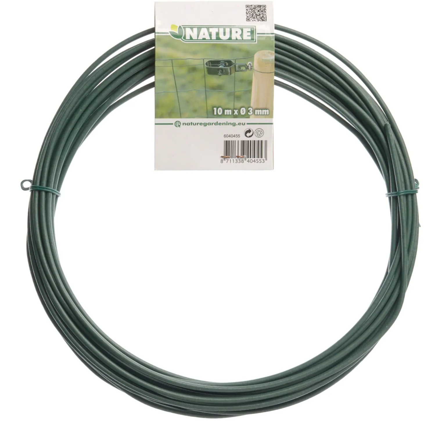 Dit Spandraad van Nature is verzinkt staal met een groene geplastificeerde coating. Deze coating voorkomt dat het metaaldraad gaat roesten. Door de draden zowel onder als boven aan te spannen, trek je het hek strak. Om het hek echt goed strak te trekken, gebruik je draadklemmen of draadspanners.
