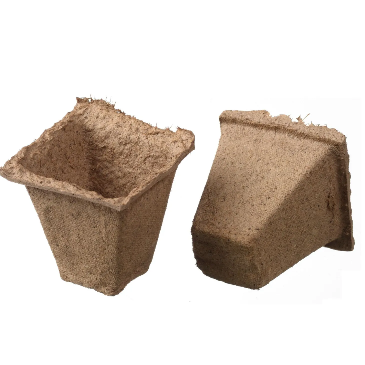 De Turfpotjes zijn 6 x 6 x 6 cm en verpakt per 16 stuks.