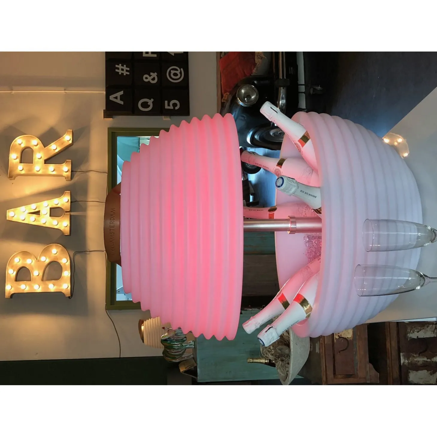 The.Bowl is de grote broer van The.Lampion. In plaats van 1 of 2 flessen wijn, kan je met The.Bowl wel tot 12 flessen koelen! Deze lamp is voorzien van multicolor licht wat je op verschillende manieren kunt instellen. Denk aan meebewegen op de muziek, een rustige fademodus of kies gewoon een mooie kleur uit. Je kan The.Bowl koppelen aan andere sync-producten van Nikki.Amsterdam zoals The.Lampion en The.Cube, zodat alle verlichting op elkaar is afgestemd.
