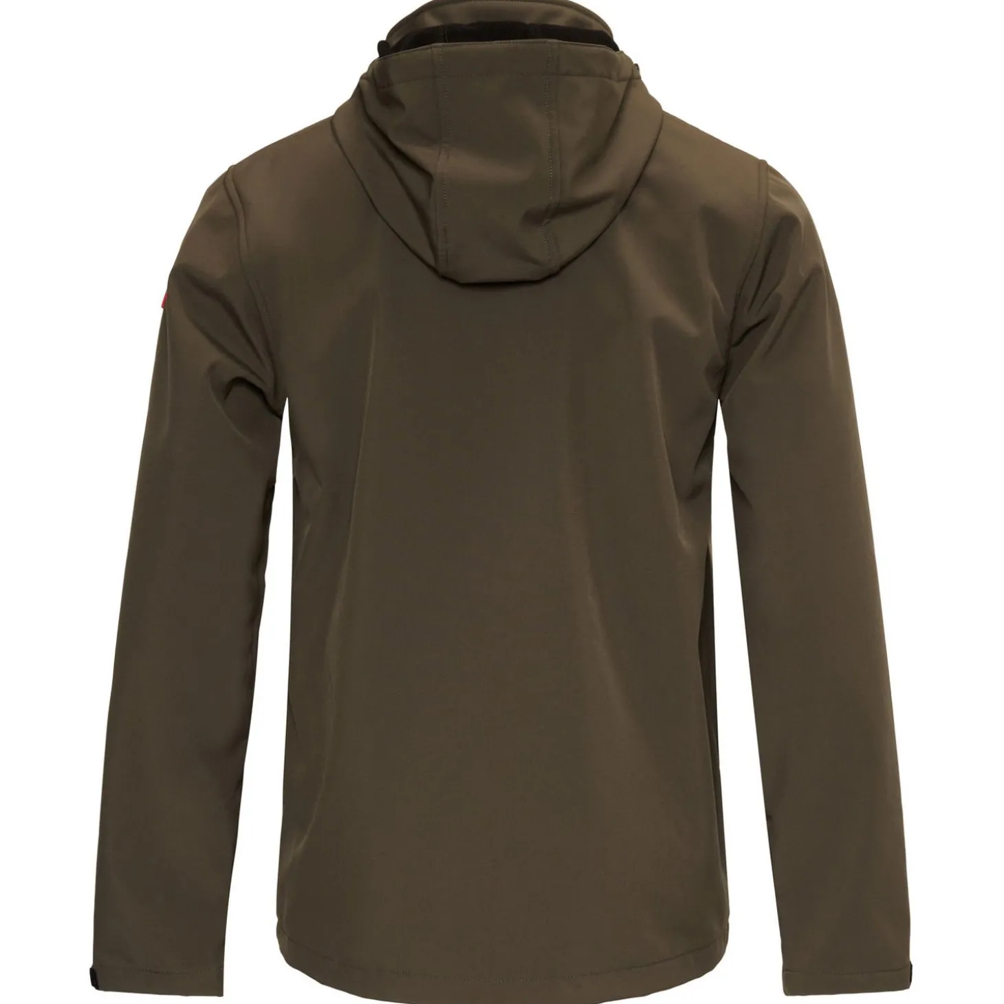 | Analyse | Heren softshell jas Eldgrim is uitgevoerd in een winddichte, waterafstotende en ademende kwaliteit. Het model is voorzien van een afneembare en verstelbare capuchon, een opstaande kraag, lange mouwen met verstelbaar klittenband, een ritssluiting, 2 ritszakken aan de voorzijde. |