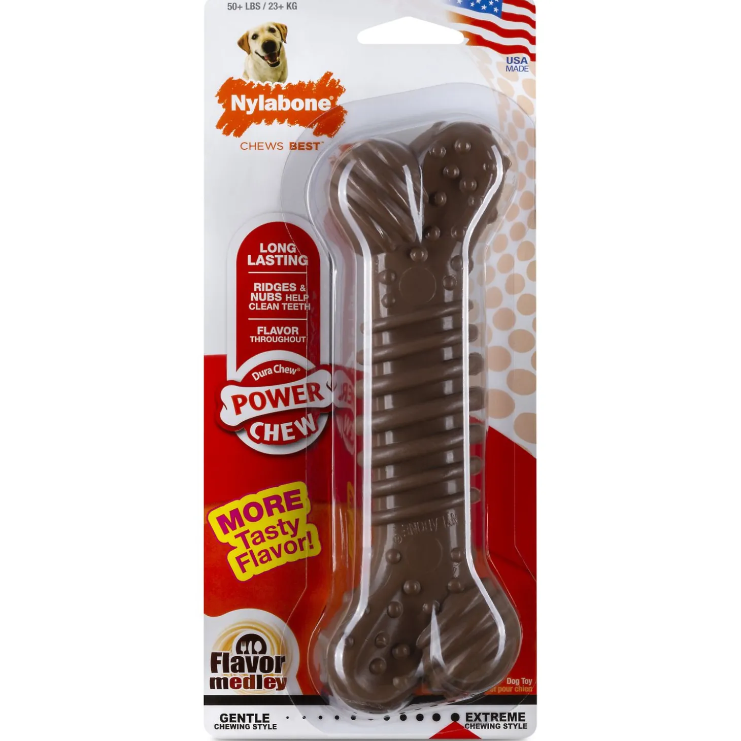 Honden hebben een sterk gebit waarmee ze goed kunnen kauwen. Een kauwsnack gemaakt van natuurlijk materiaal eten ze vaak snel op, zo hebben ze er maar kort plezier van. Met de Dura Chew Power flavor MedleyXL van Nylabone houd je jouw hond wel even bezig!De lekkere medleysmaak blijft behouden tijdens het kauwen.