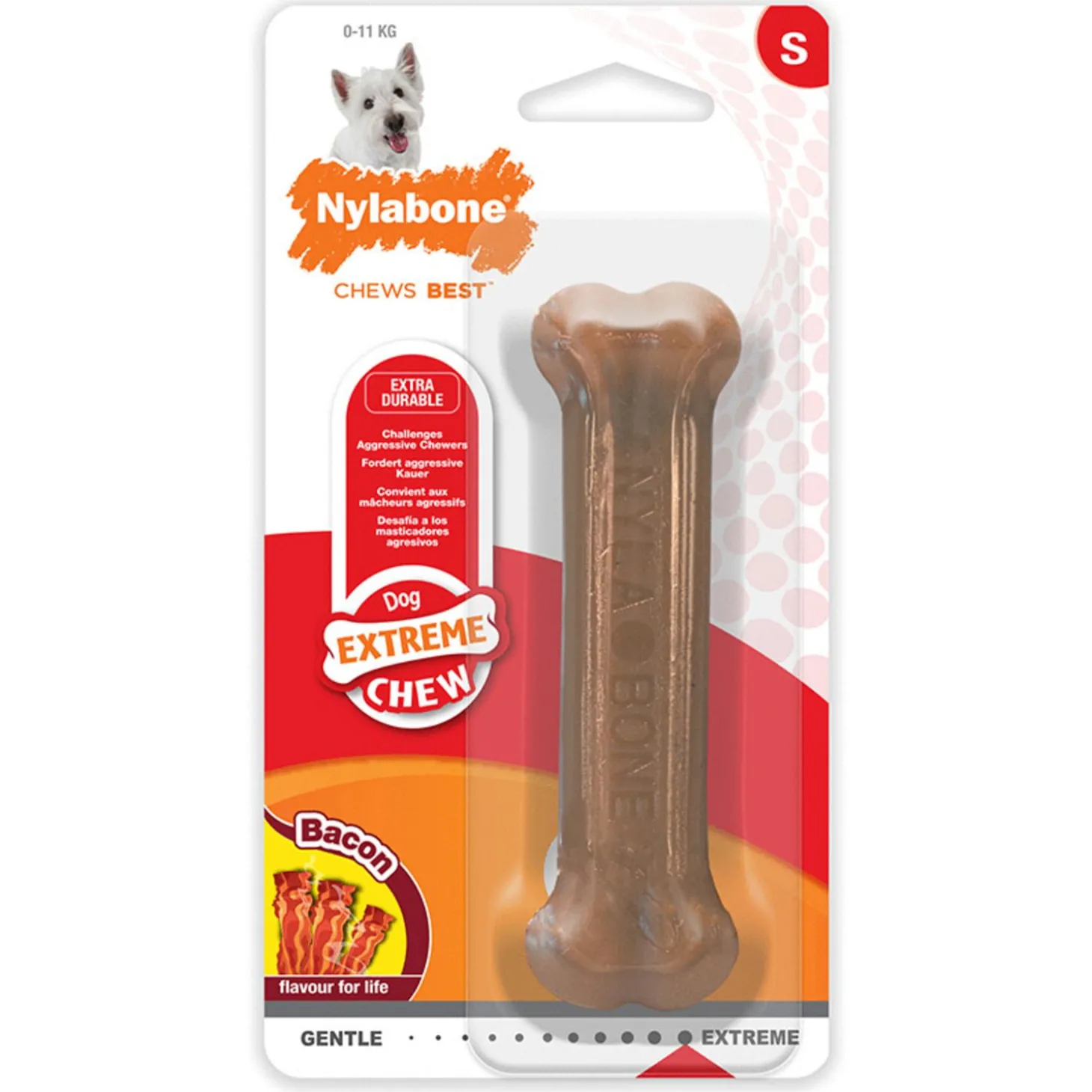 | Nylabone Durable Bone Bacon S: | Tot 11 kg | Chihuahua, Cavapoo, Beagle |