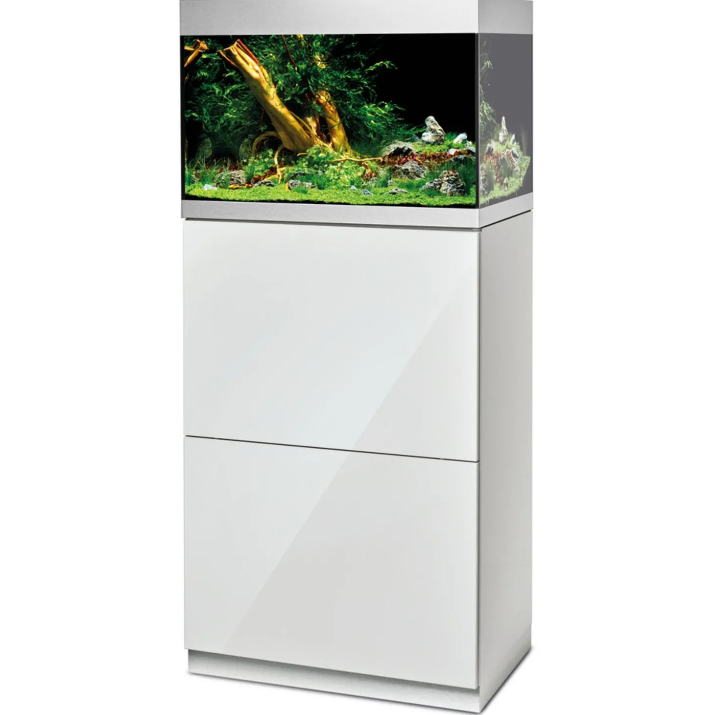 Het aquarium straalt design uit en vormt een modern geheel in combinatie met de kast. Storende slangen en kabels zijn perfect weggewerkt en de Oase filters (niet inbegrepen) zijn onderhoudsarm. Het aquarium is voorzien van een strakke, aluminium afwerking met een volledig open te maken deksel. Ook bevat het een afwerkrand voor het grind en de waterlijn. Verlichting niet inbegrepen.