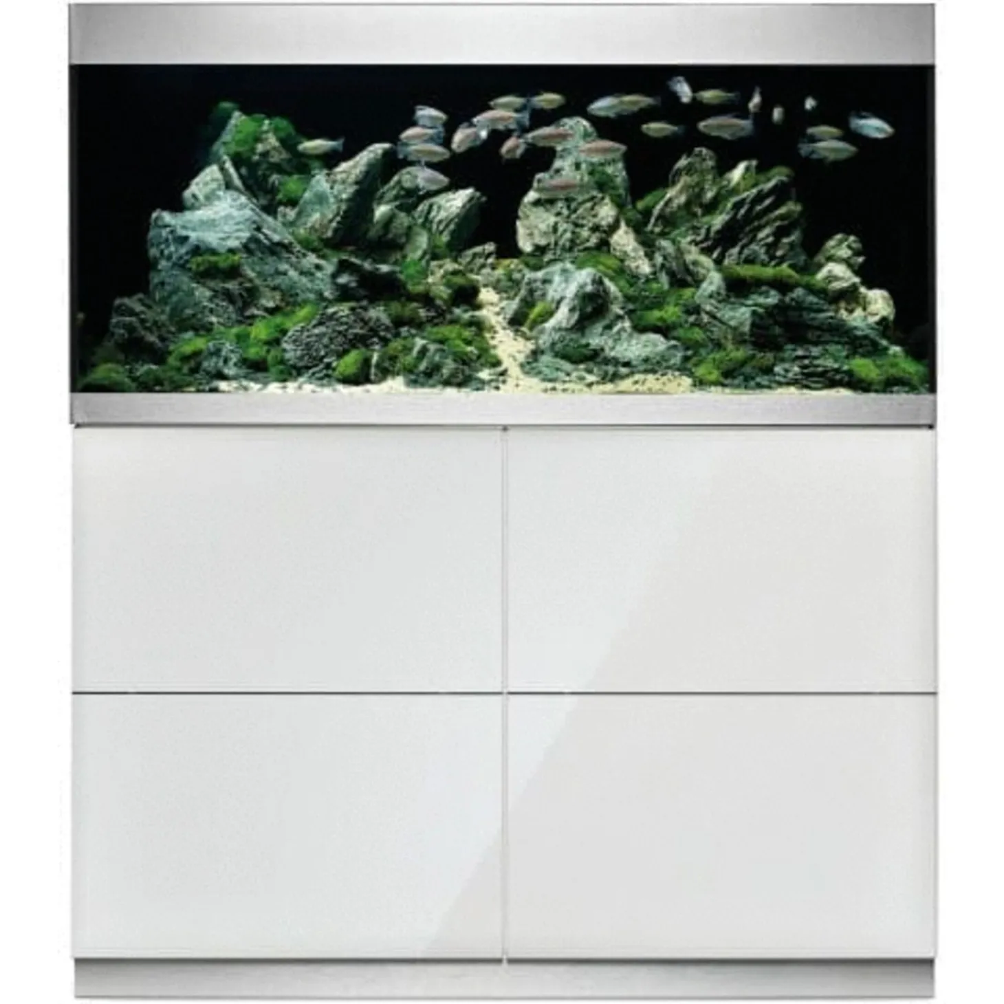 Het aquarium straalt design uit en vormt een modern geheel in combinatie met de kast. Storende slangen en kabels zijn perfect weggewerkt en de Oase filters (niet inbegrepen) zijn onderhoudsarm. Het aquarium is voorzien van een strakke, aluminium afwerking met een volledig open te maken deksel. Ook bevat het een afwerkrand voor het grind en de waterlijn. Verlichting niet inbegrepen.