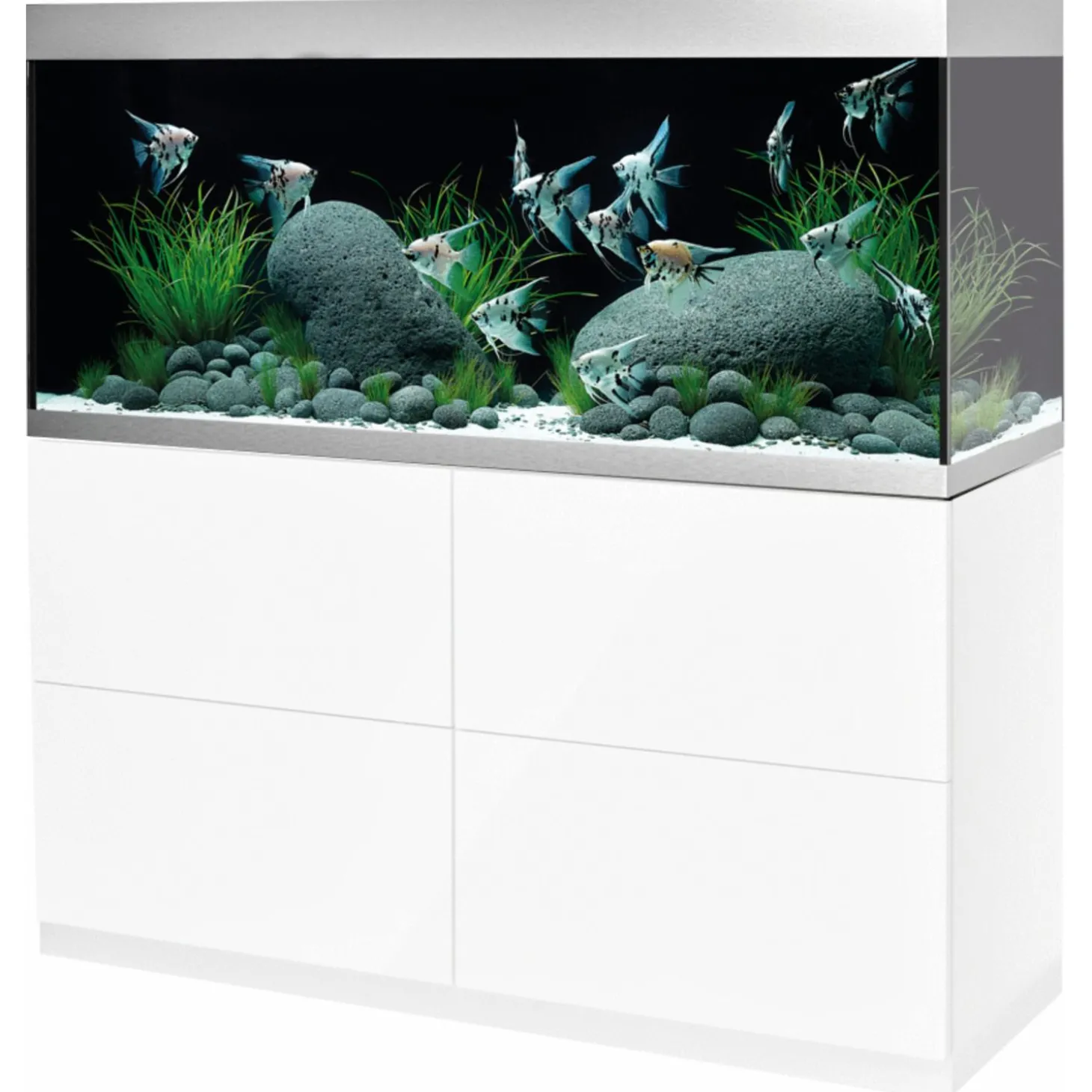 Het aquarium straalt design uit en vormt een modern geheel in combinatie met de kast. Storende slangen en kabels zijn perfect weggewerkt en de Oase filters (niet inbegrepen) zijn onderhoudsarm. Het aquarium is voorzien van een strakke, aluminium afwerking met een volledig open te maken deksel. Ook bevat het een afwerkrand voor het grind en de waterlijn. Verlichting niet inbegrepen.
