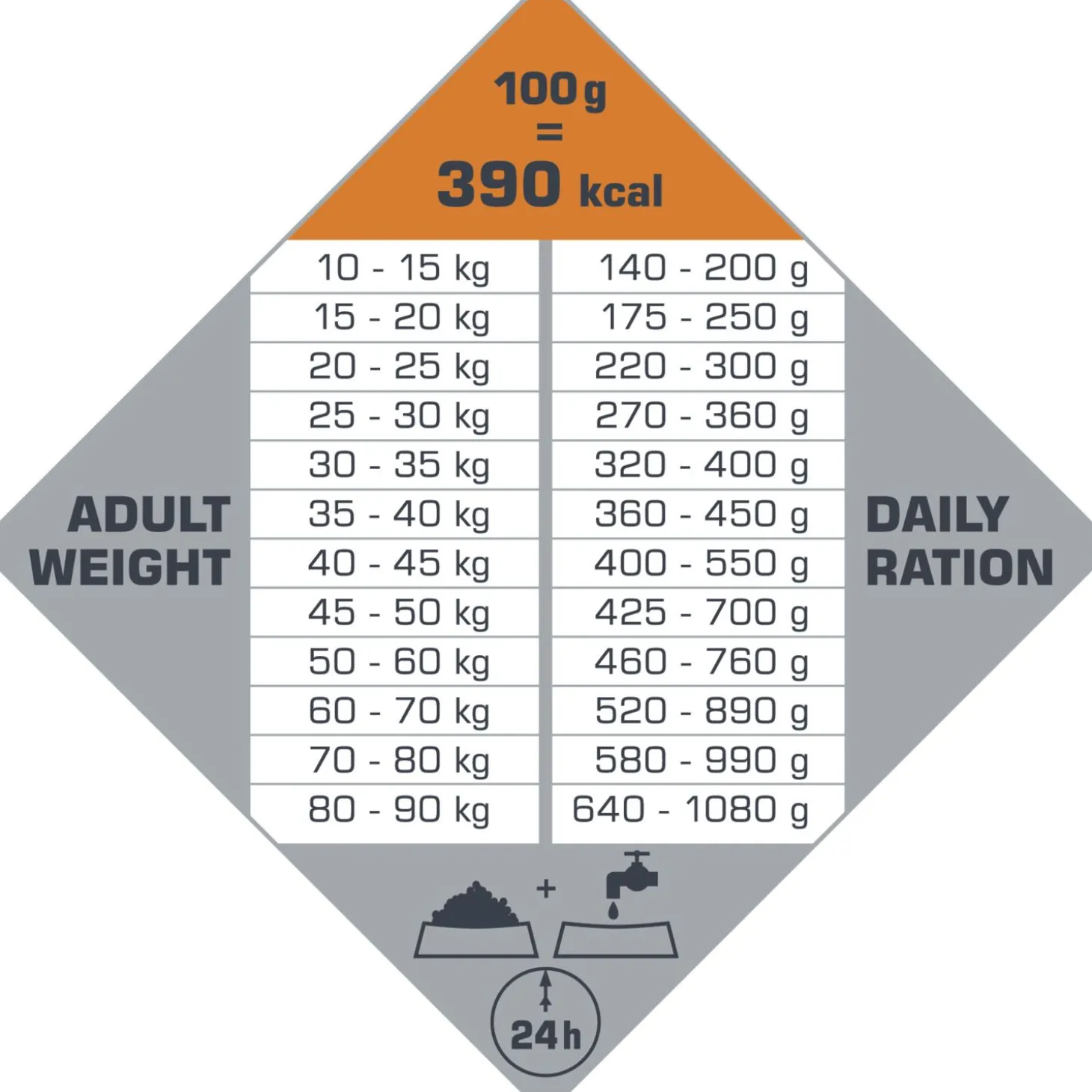| Aanbeveling | • Die empfindliche Reaktion des Verdauungssystems kann verschiedene Ursachen haben, zum Beispiel das Futter, eine Allergie, eine Entzündung usw. Konsultieren Sie bei anhaltendem Durchfall oder Darmproblemen stets Ihren Tierarzt• Sorgen Sie stets für ausreichend frisches Trinkwasser• Stellen Sie ab einem Alter von etwa 7 Jahren auf Opti Life Senior Medium & Maxi um||• A sensitive digestive system can be due to various factors such as food, allergy, inflammation, … Always consult your vet in case of persistent diarrhoea or intestinal problems• Make sure there is plenty of fresh drinking water• Switch to Opti Life Senior Medium & Maxi at about seven years of age||• Une digestion sensible peut être due à divers facteurs, tels que l’alimentation, l’allergie, l’inflammation, etc. Consultez toujours votre vétérinaire en cas de diarrhée ou problèmes intestinaux persistants.• Veillez à ce qu’il ait toujours suffisamment d’eau fraîche à boire.• Passez à Opti Life Senior Medium & Maxi lorsque votre chien atteint environ l’âge de 7 ans.||• Een gevoelige spijsvertering kan te wijten zijn aan diverse factoren zoals voeding, allergie, ontsteking, … Raadpleeg steeds je dierenarts in geval van aanhoudende diarree of darmproblemen• Zorg steeds voor voldoende vers drinkwater• Schakel vanaf de leeftijd van ongeveer 7 jaar over op Opti Life Senior Medium & Maxi |