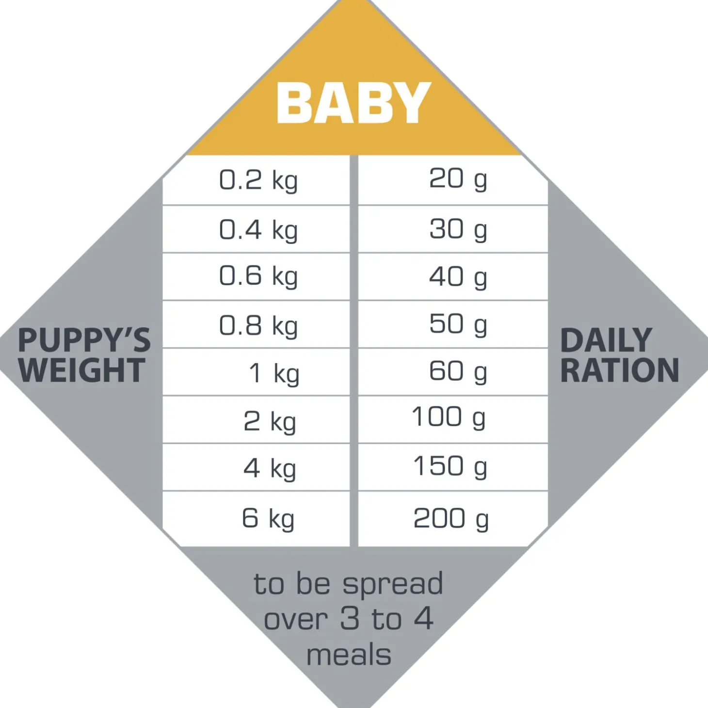 Opti Life Baby werd speciaal ontwikkeld om pups vast voedsel te leren opnemen. Via eenvoudige bereiding met water laat het zich gemakkelijk omvormen tot een smakelijk papje.