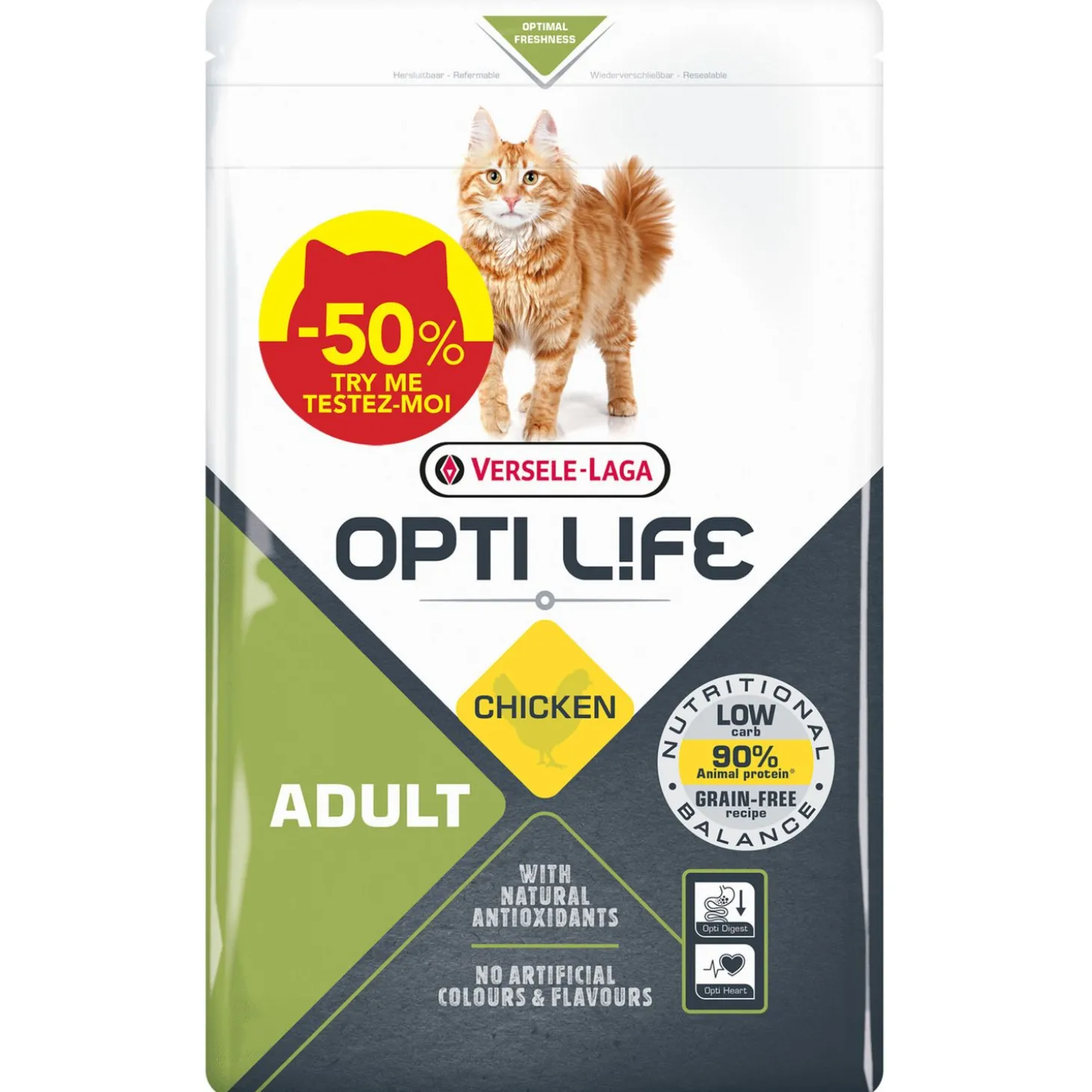 - Unieke formule, helemaal in lijn met de nutritionele behoeftes van je volwassen kat: laag in koolhydraten, granenvrij en 90% van de eiwitten zijn dierlijk.