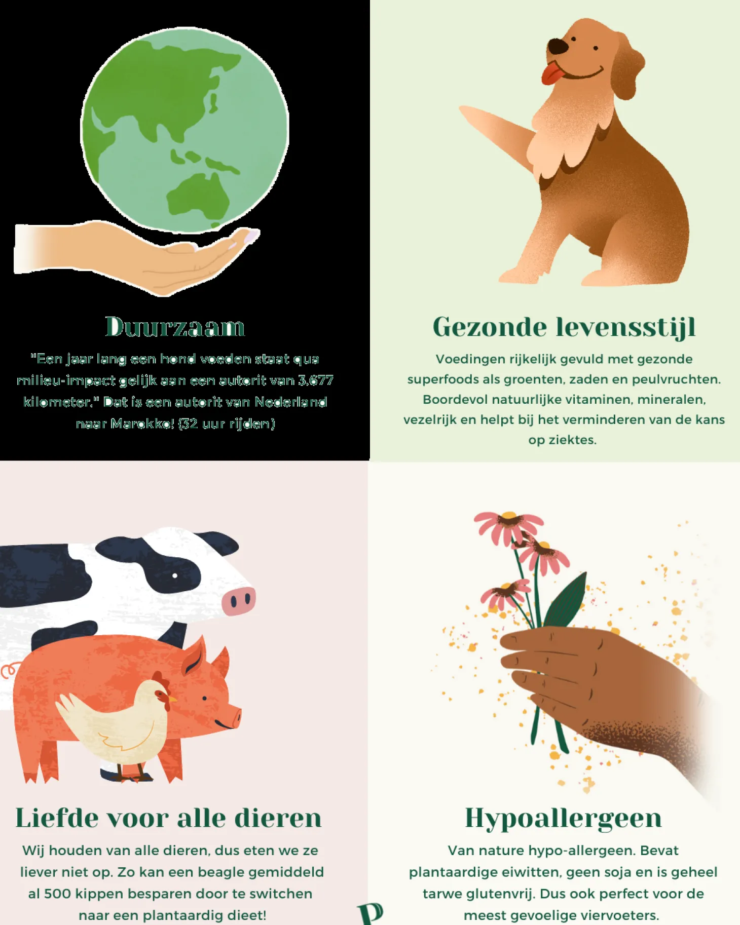 - Hypoallergene, plantaardige voeding (dus geen vlees)