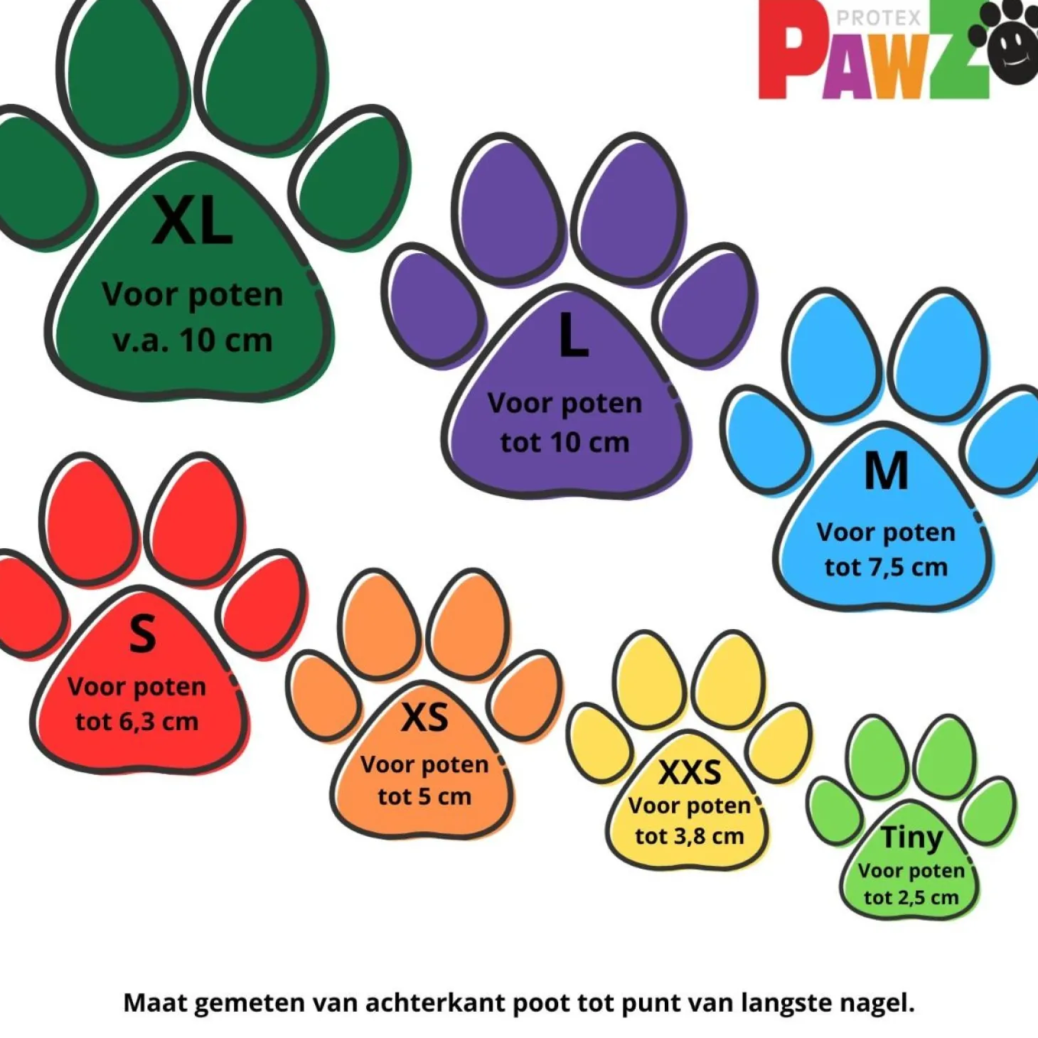 De Pawz rubberen hondenschoenen zijn verkrijgbaar in de onderstaande maten: