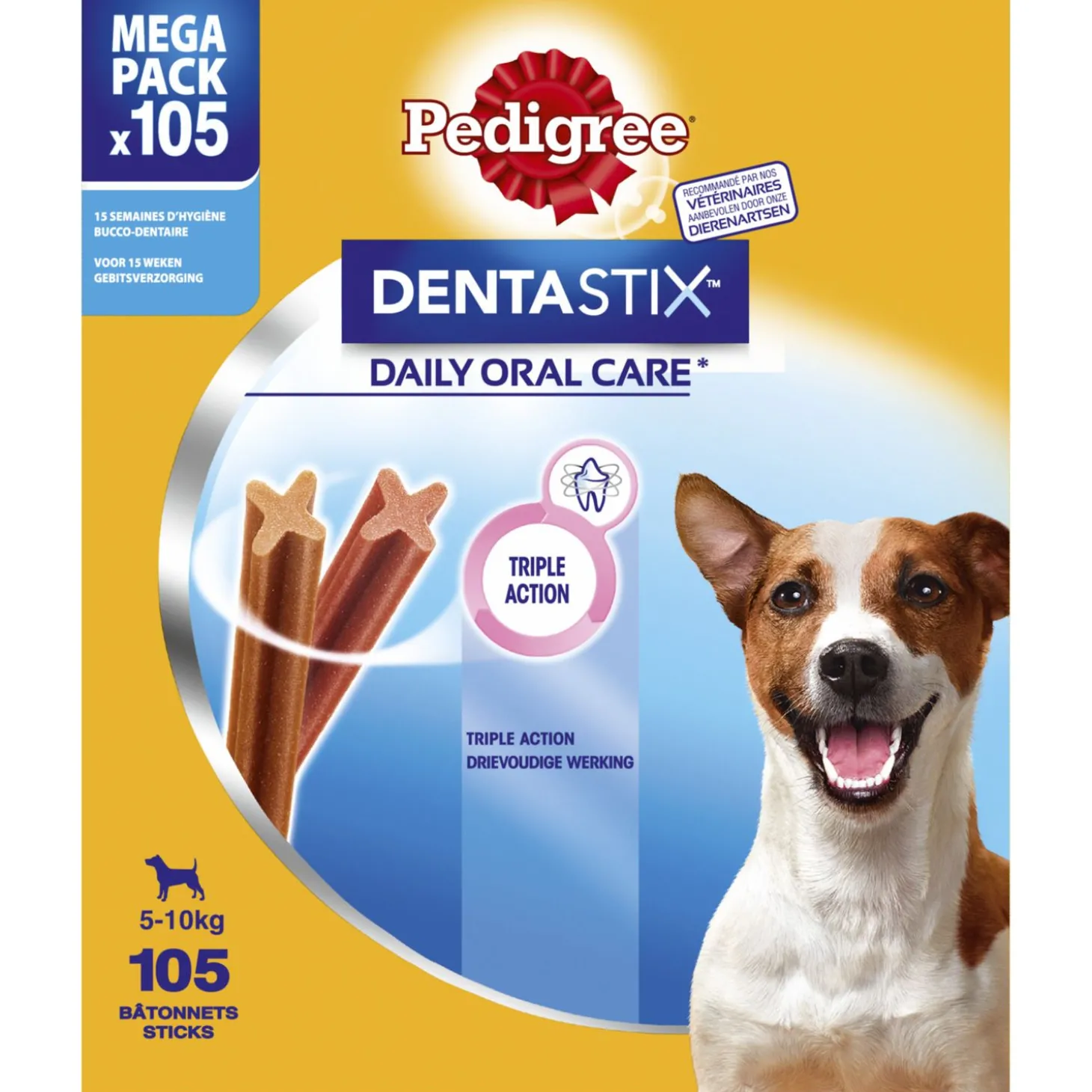 Pedigree DentaStix Multipack Mini kauwstaven van Pedigree hebben een triple action werking op het gebit van je hond. De unieke x-vorm verwijdert vuil aan de oppervlakte en de ingrediënten maken tandplak onschadelijk.