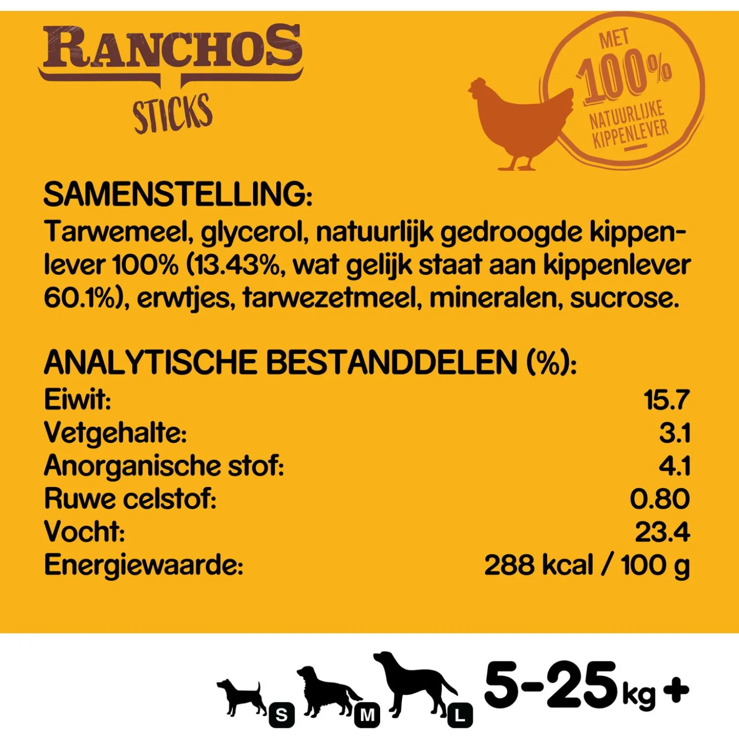 Wakker het natuurlijk instinct van je hond aan met Pedigree Ranchos Sticks. Een heerlijke hondensnack gemaakt van 100% natuurlijk kippenlever, daar kan je hond geen nee tegen zeggen! De Sticks zijn ideaal om je hond mee te verwennen of te belonen tijdens een training. Ze kunnen gegeven worden aan honden van alle rassen en formaten.
