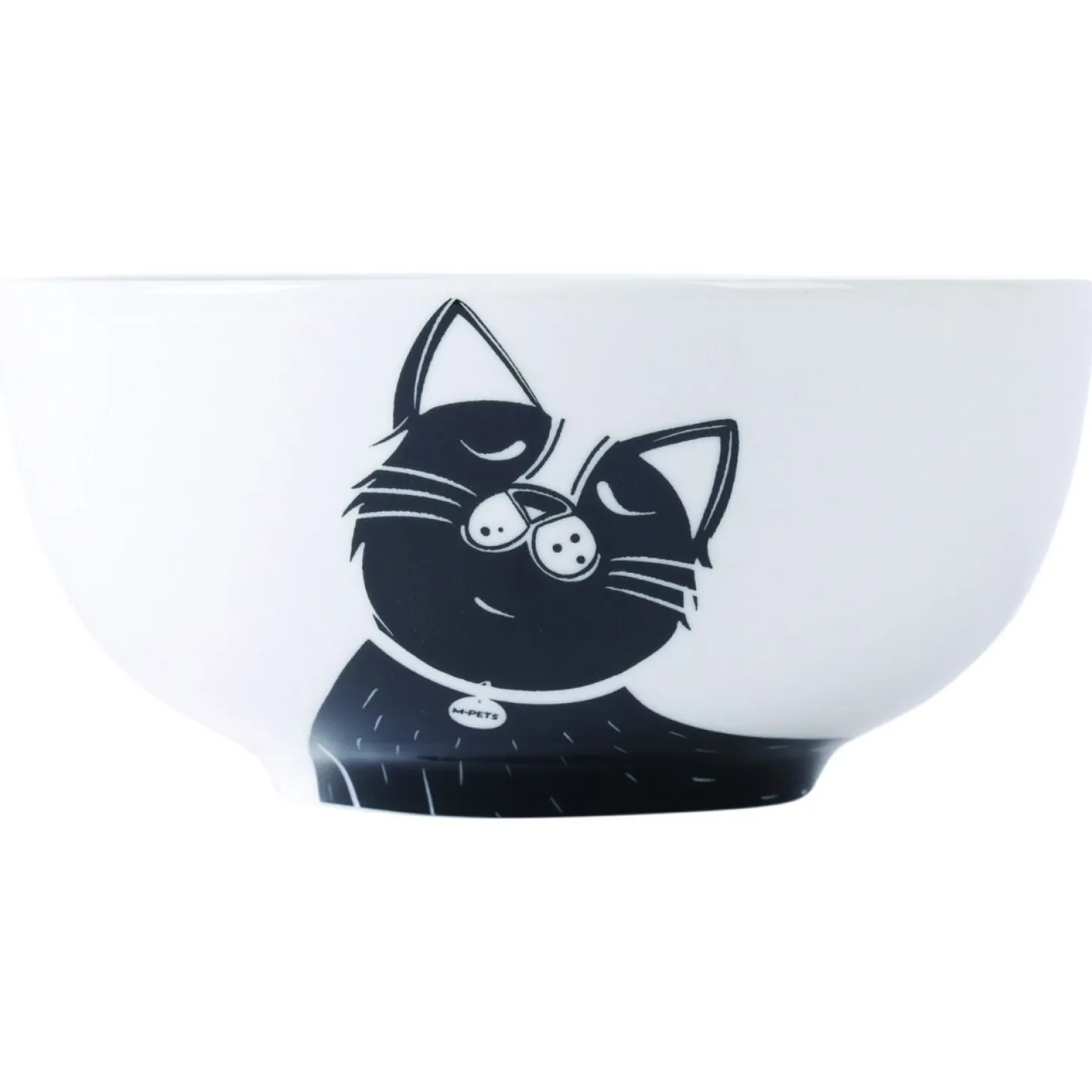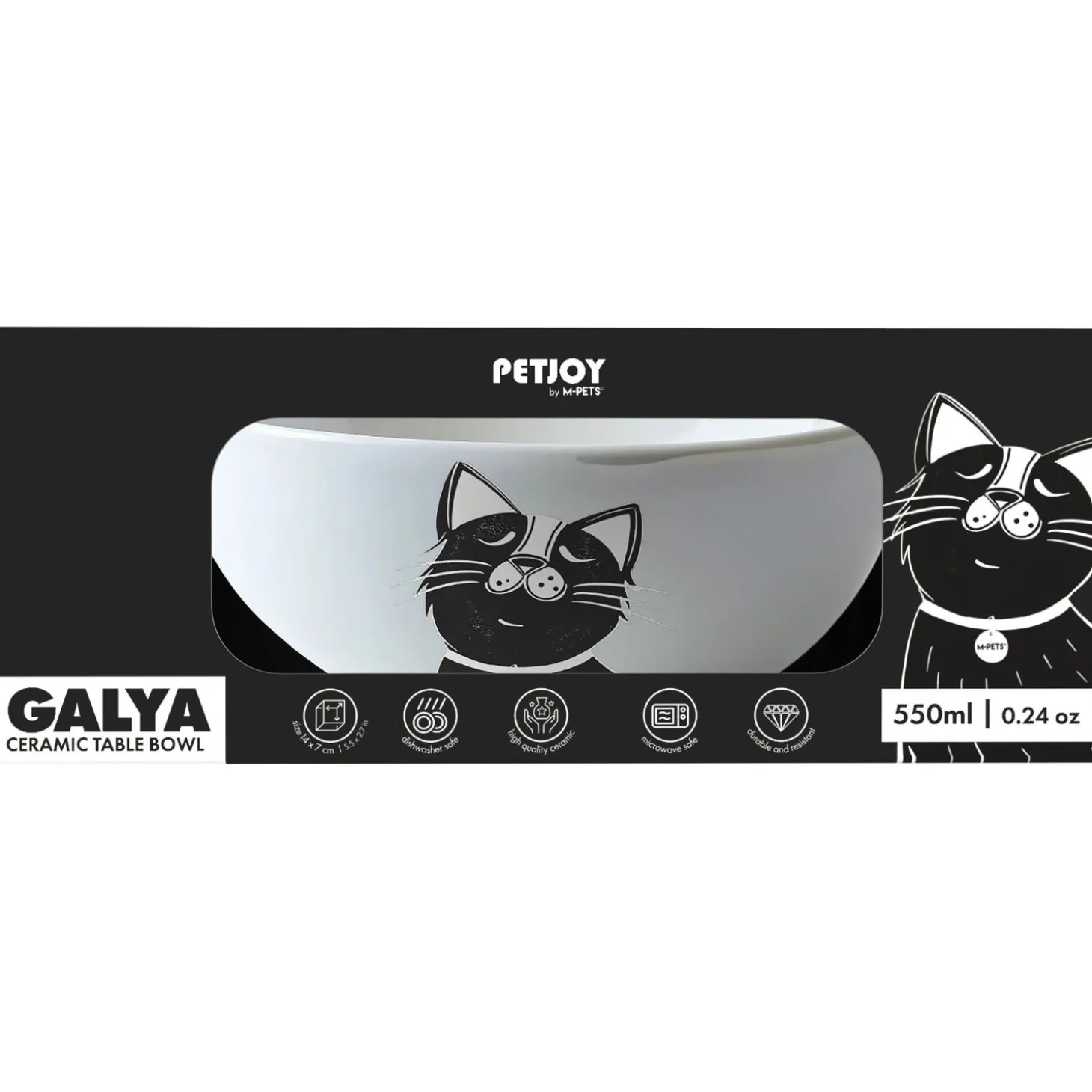 Deze prachtige Galya voer- en drinkbak van Petjoy toont een stijlvol zwart-wit kattenportret dat perfect past bij elke interieurstijl. Het minimalistische design met speelse kattengezichtjes maakt van elke maaltijd een bijzonder moment voor je kat.