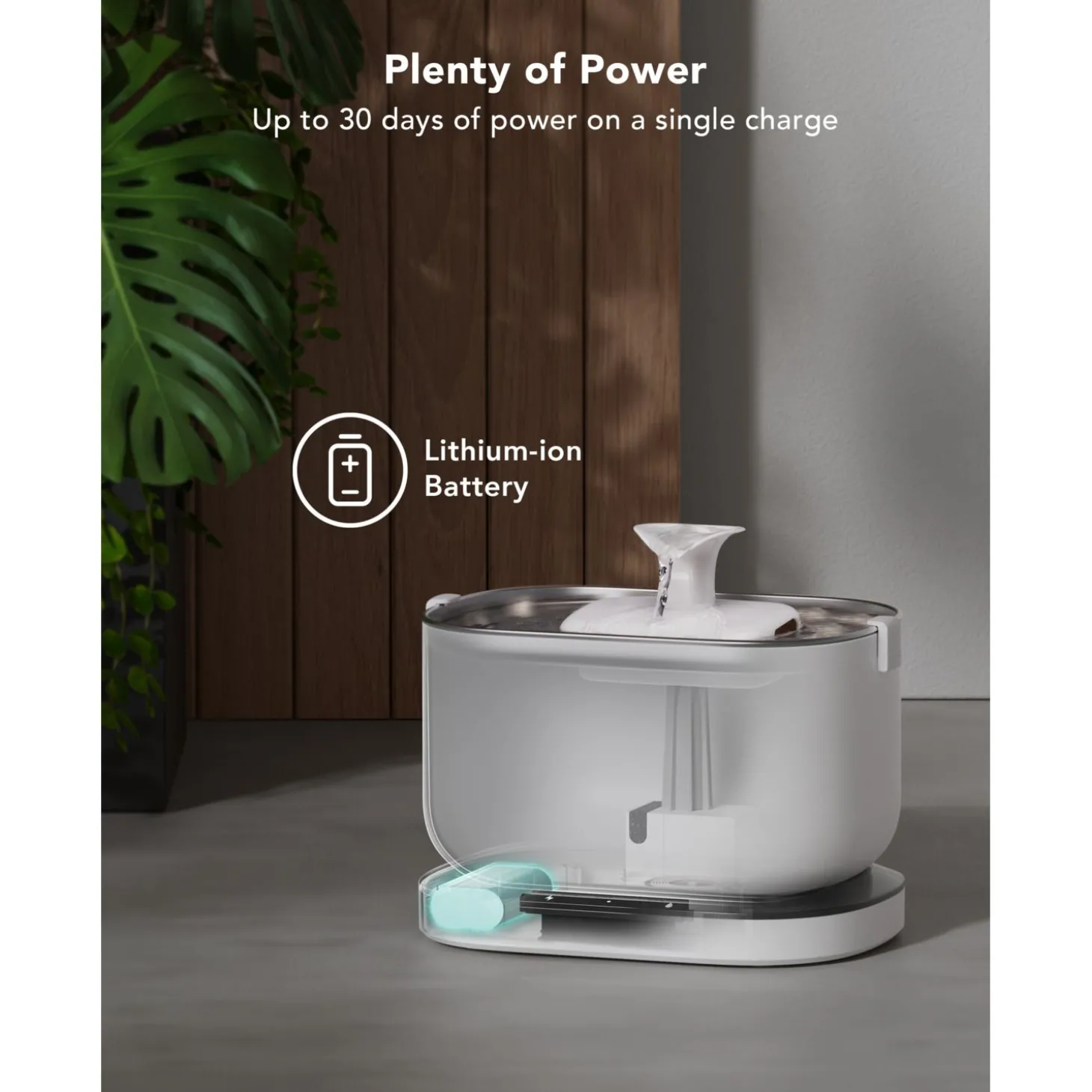 - Laad de fontein volledig op voor eerste gebruik voor maximaal 30 dagen draadloos gemak.