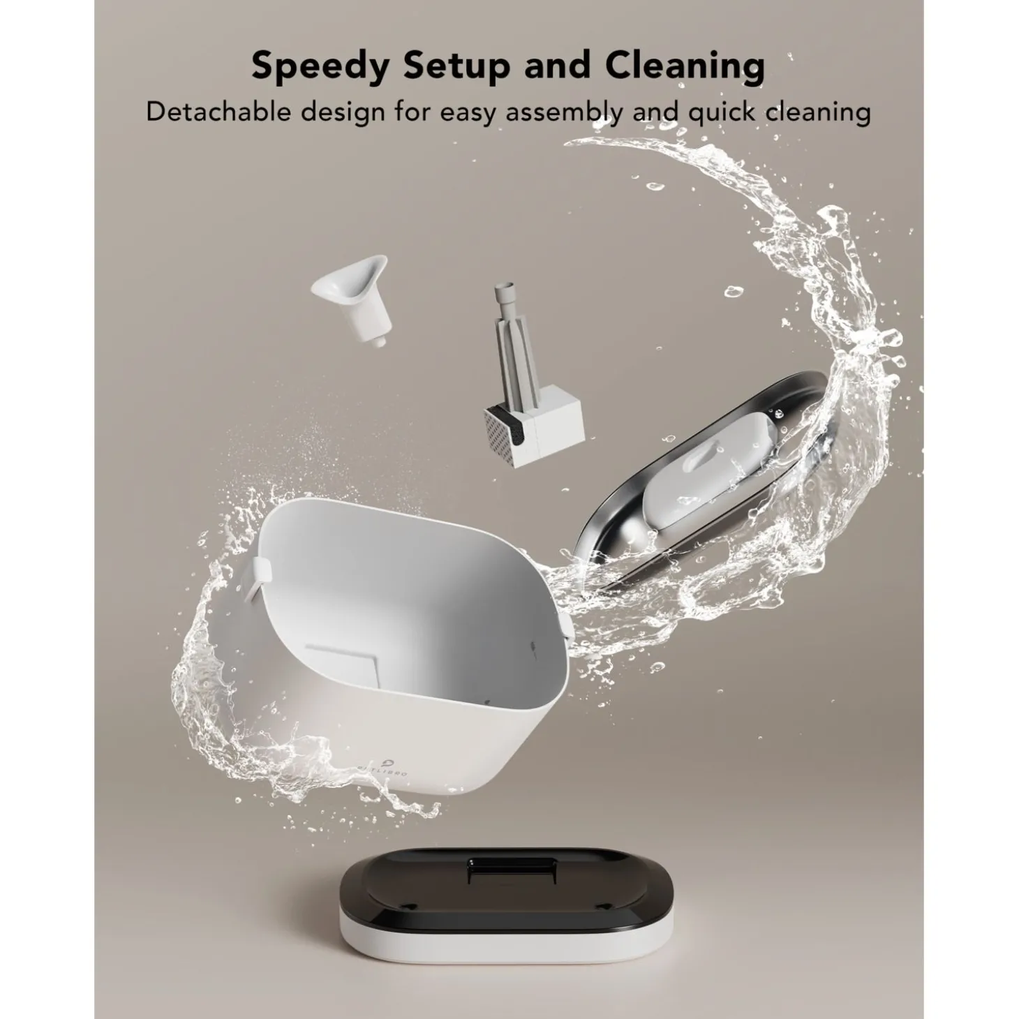 - Vul het verwijderbare reservoir tot 2,5 liter en plaats het terug op de basis.