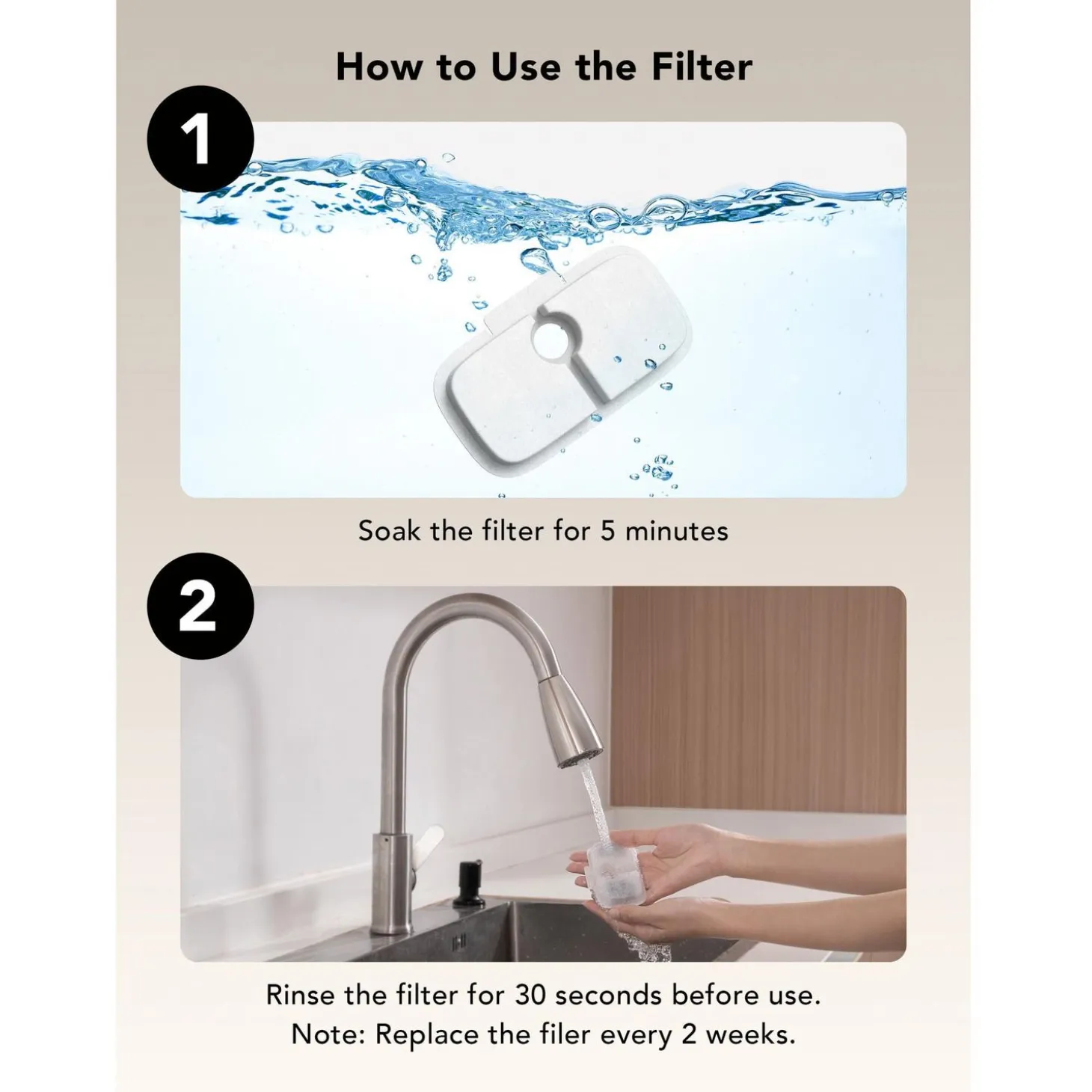 - Vervang het filter elke 2 weken voor blijvend fris en zuiver water.