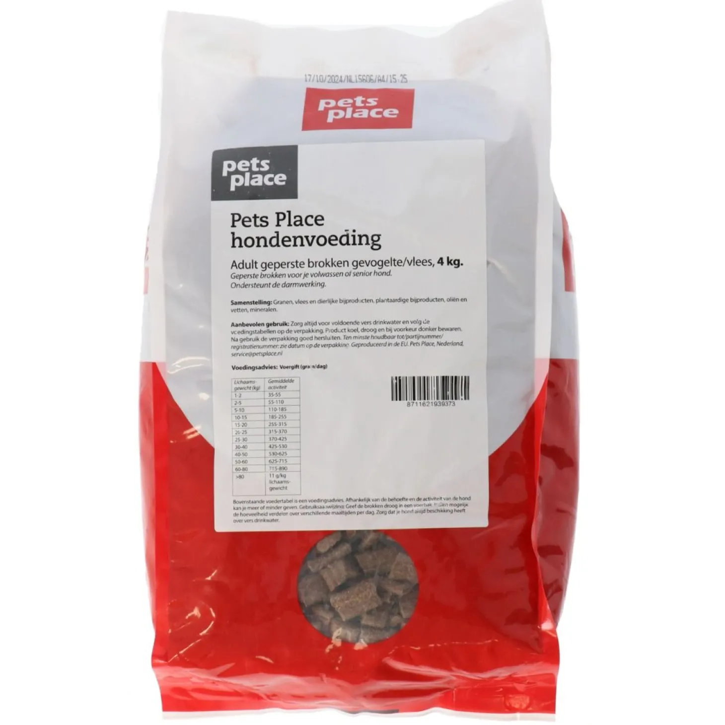 Pets Place Adult geperste brokken zijn geschikt voor zowel volwassen als senior honden. Doordat de brokken geperst zijn worden de voedingsstoffen sneller opgenomen dan krokante brokken en verkleint het de kans op een maagtorsie. Deze brokken ondersteunen de darmwerking, dragen bij aan een optimale vertering en zorgen voor een goede huid- en vachtconditie.