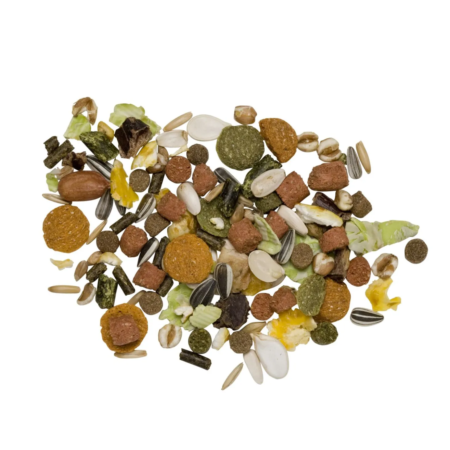 | Samenstelling | Gewicht: 600 g. Bevat 1e kwaliteit zongerijpte zaden,noten en granen bevat elk voer hoogwaardige eiwitten, planten, kruiden, groenten en fruit. |