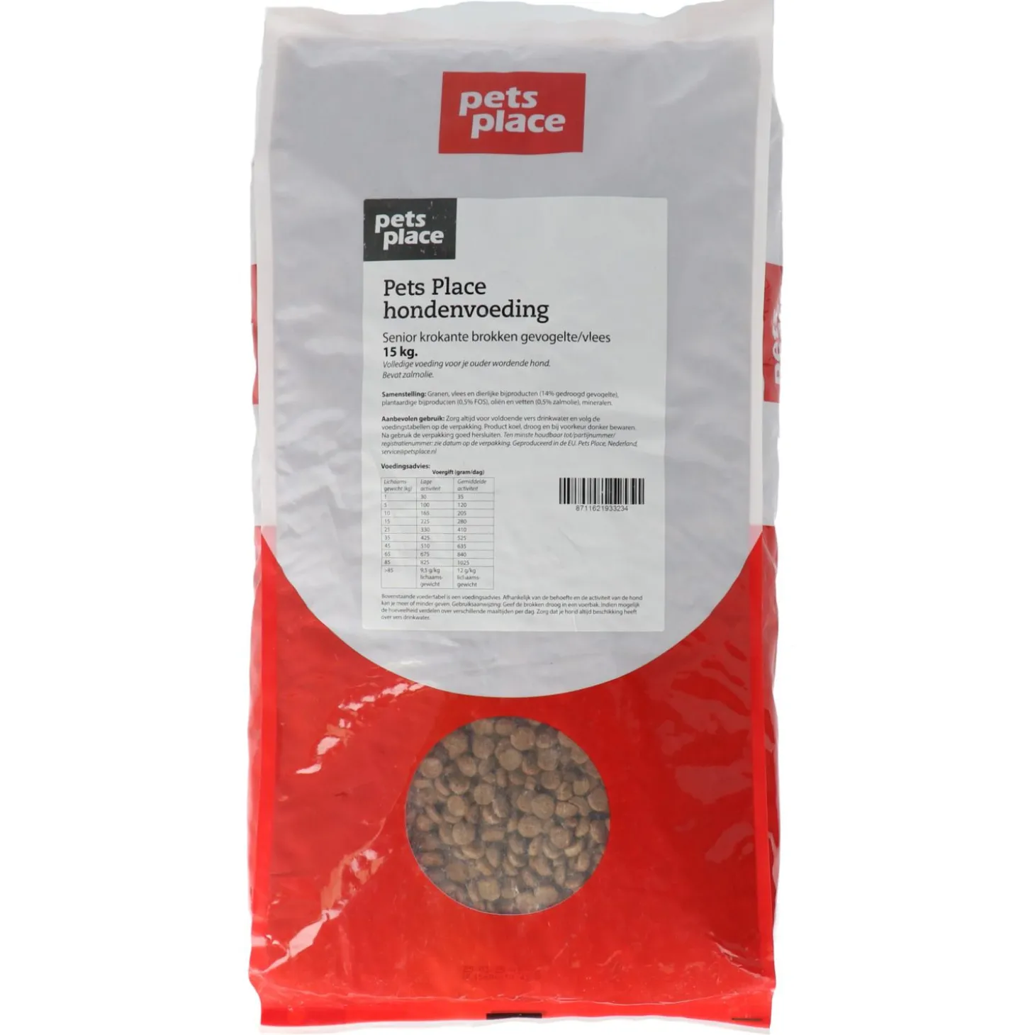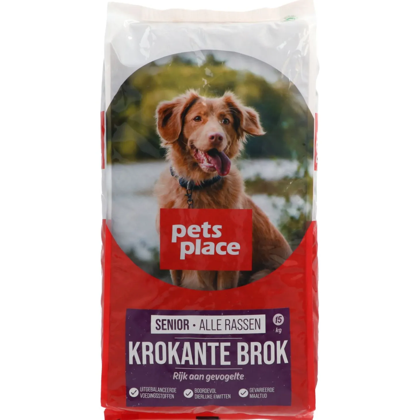 Pets Place Senior krokante brokken zijn speciaal samengesteld voor de ouder wordende hond. Het voer heeft een aangepast eiwit-, vet- en energiegehalte en is rijk aan gevogelte.