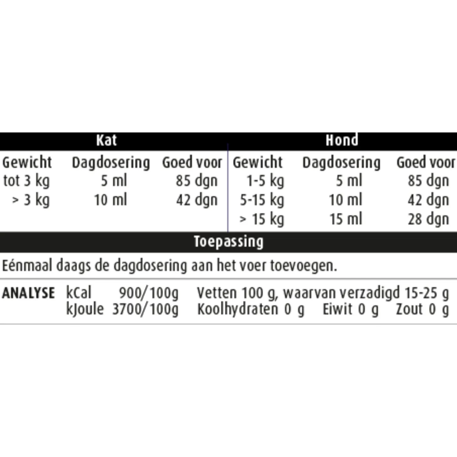 De Pharmox Zalmolie bevat een handige dop waarmee makkelijk gedoseerd kan worden. Geef de olie 1 keer per dag tijdens het eten. Je kunt de olie zo over het voer heen schenken, sommige dieren vinden het nog lekker ook!