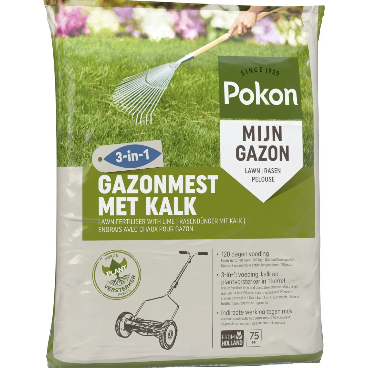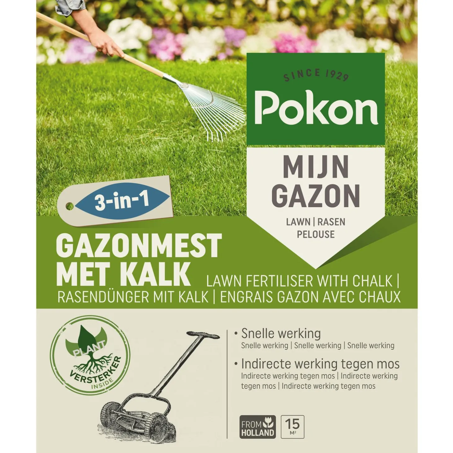 Een sterk en groen gazon krijg je niet zomaar. Het is belangrijk om je gazon te voorzien van de juiste voeding om zo een mooi, groen en dicht gazon te creëren. Maar ook kalk is belangrijk om voor een gezonde bodem te zorgen. Als laatste kan ook een Plantversterker handig zijn voor steviger gras dat bestand is tegen droogte en ziektes. Dit alles kan je in een handomdraai regelen met de Gazonmest met Kalk 3-in-1 van Pokon.