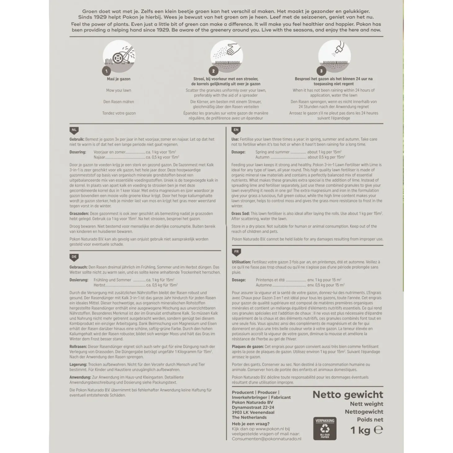Gebruiksaanwijzing Gazonmest met Kalk 3-in-1